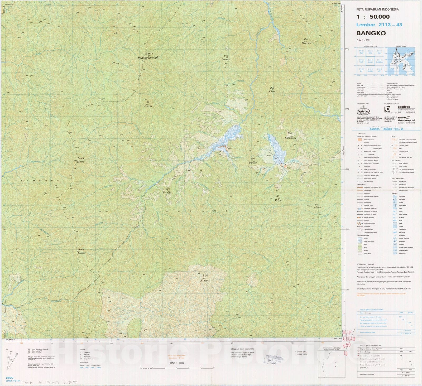 • .Map : Bangko, Indonesia 1991, Peta rupabumi Indonesia, 1:50,000 , Antique Vintage Reproduction