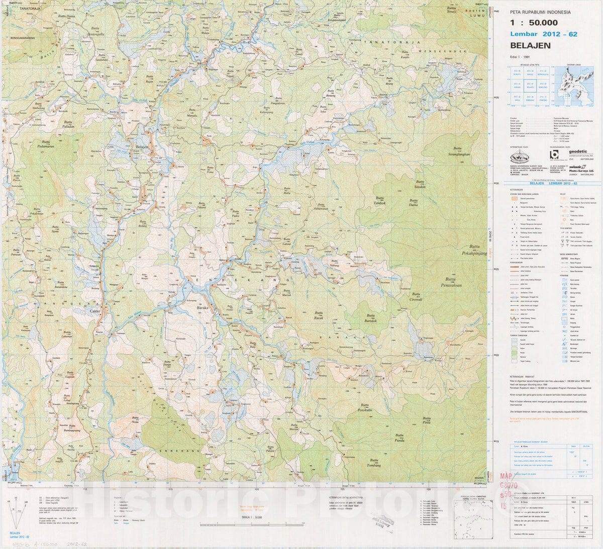 Map : Belajen, Indonesia 1991, Peta rupabumi Indonesia, 1:50,000 , Antique Vintage Reproduction