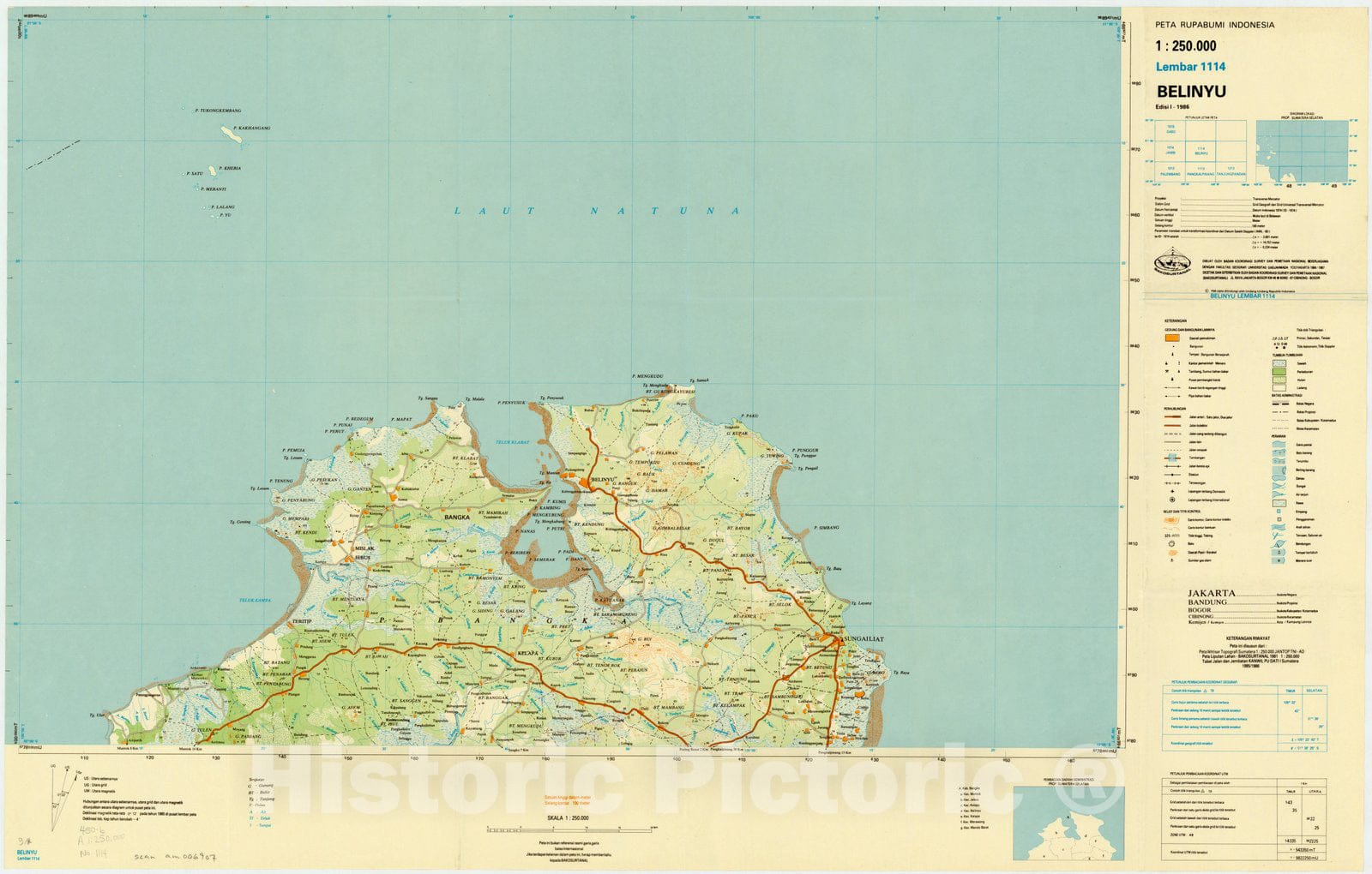 Map : Belinyu, Indonesia 1986, Peta rupabumi Indonesia, 1:250,000 , Antique Vintage Reproduction