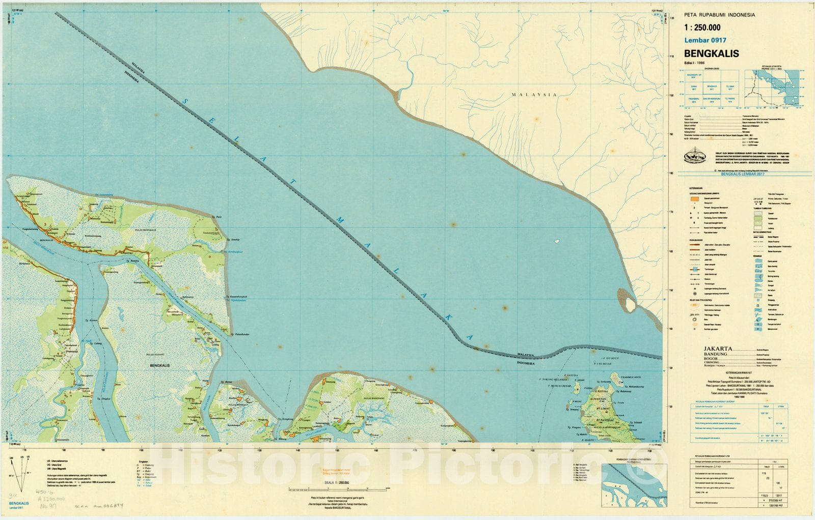 Map : Bengkalis, Indonesia 1985, Peta rupabumi Indonesia, 1:250,000 , Antique Vintage Reproduction