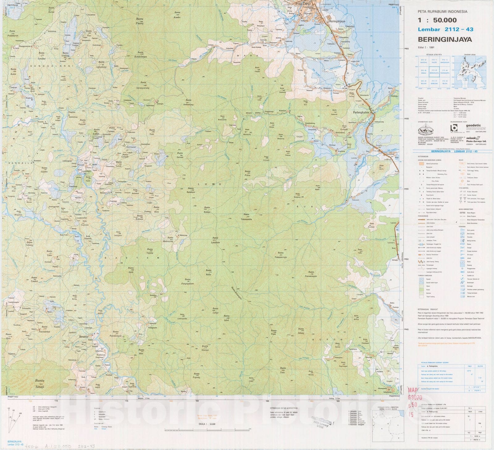 Map : Beringinjaya, Indonesia 1991, Peta rupabumi Indonesia, 1:50,000 , Antique Vintage Reproduction
