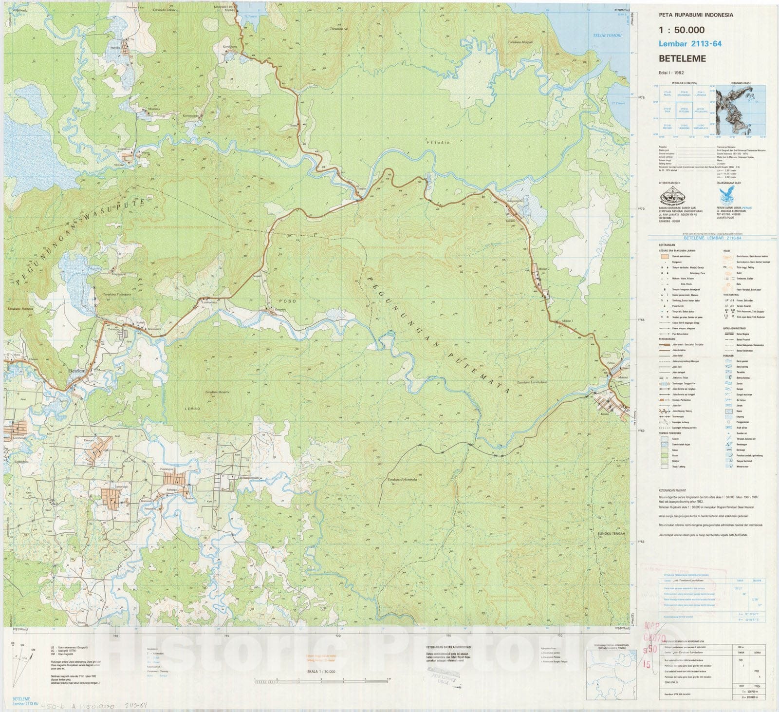 Map : Beteleme, Indonesia 1991, Peta rupabumi Indonesia, 1:50,000 , Antique Vintage Reproduction