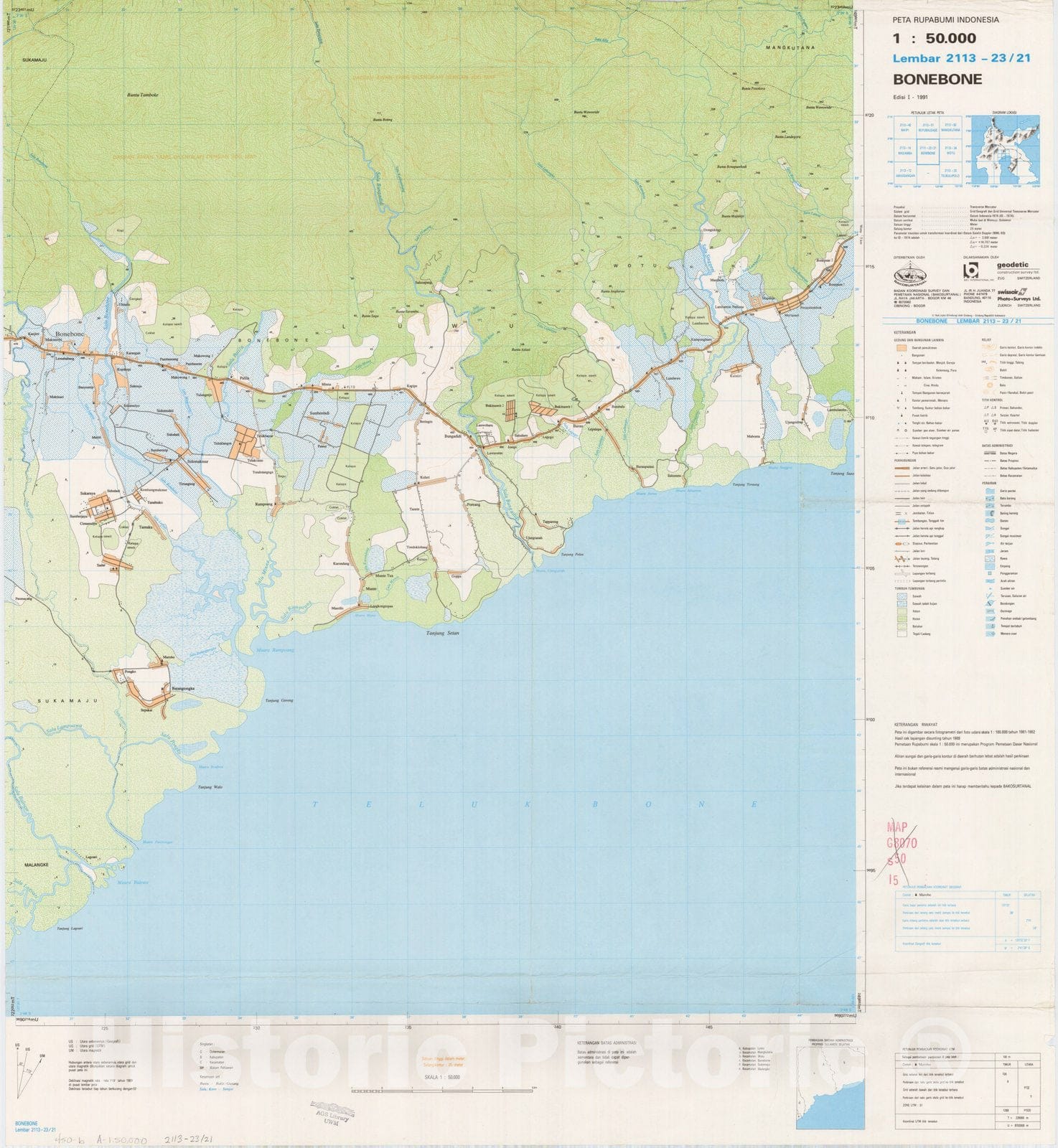 Map : Bonebone, Indonesia 1991, Peta rupabumi Indonesia, 1:50,000 , Antique Vintage Reproduction