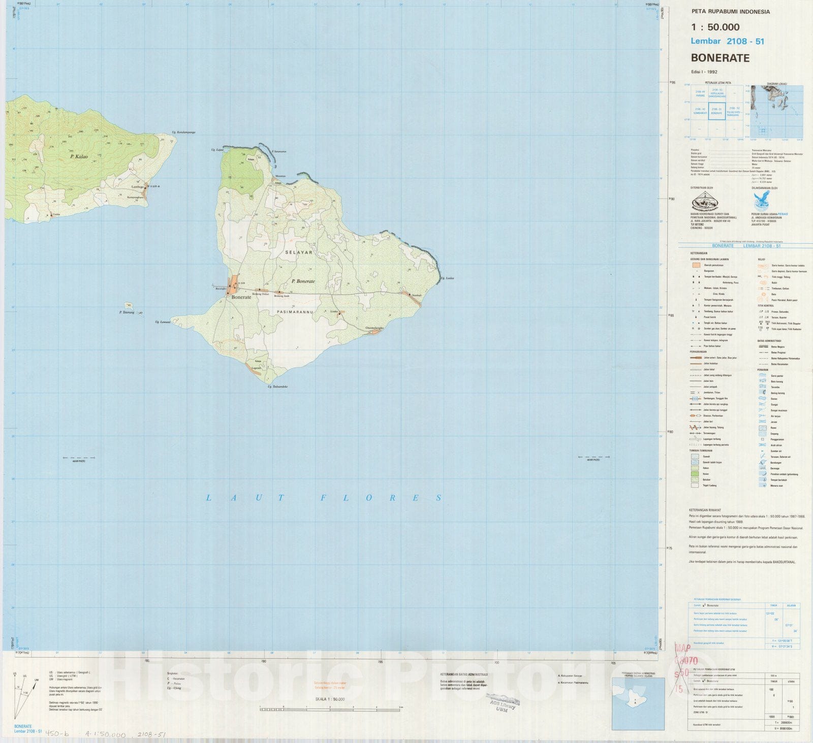 Map : Bonerate, Indonesia 1991, Peta rupabumi Indonesia, 1:50,000 , Antique Vintage Reproduction