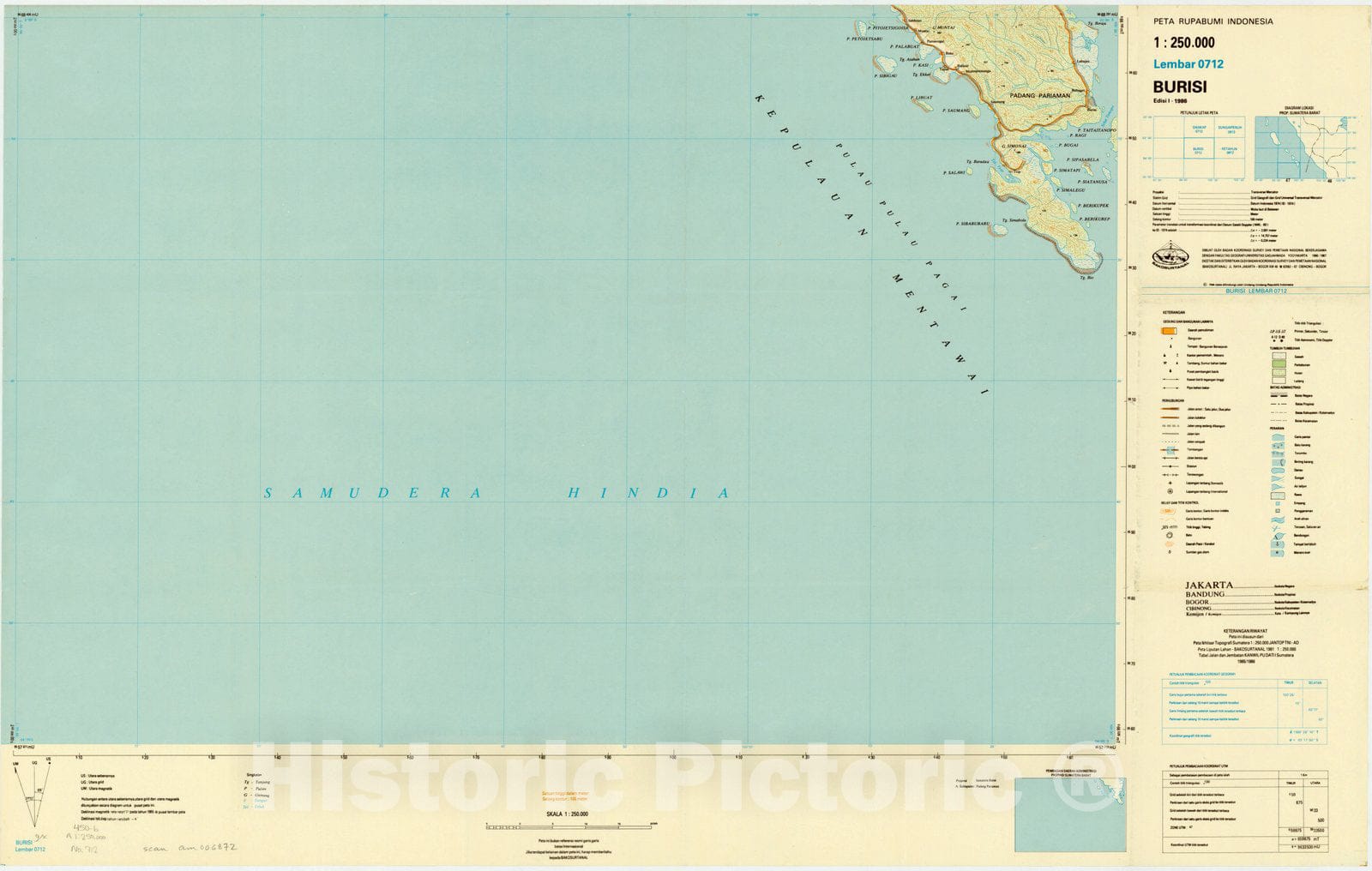 Map : Burisi, Indonesia 1985, Peta rupabumi Indonesia, 1:250,000 , Antique Vintage Reproduction