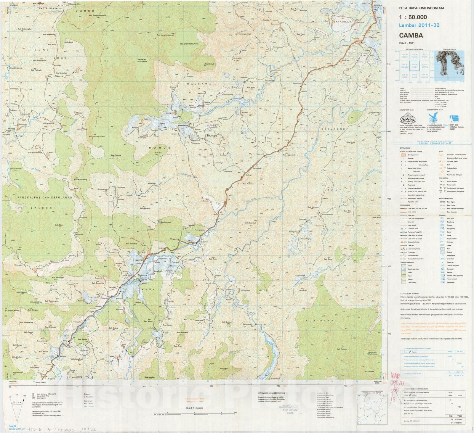 Map : Camba, Indonesia 1991, Peta rupabumi Indonesia, 1:50,000 , Antique Vintage Reproduction
