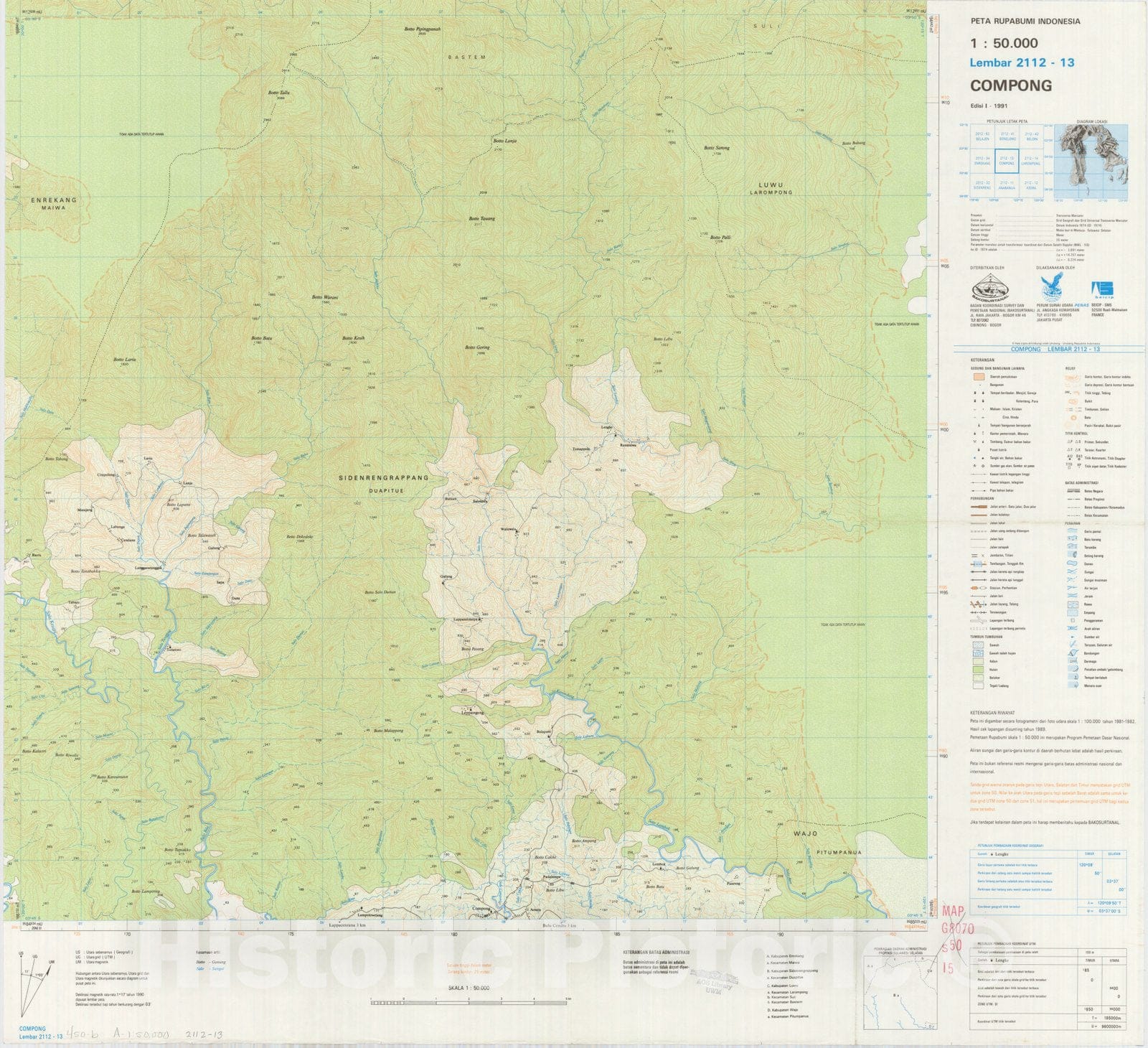 • Map : Compong, Indonesia 1991, Peta rupabumi Indonesia, 1:50,000 , Antique Vintage Reproduction