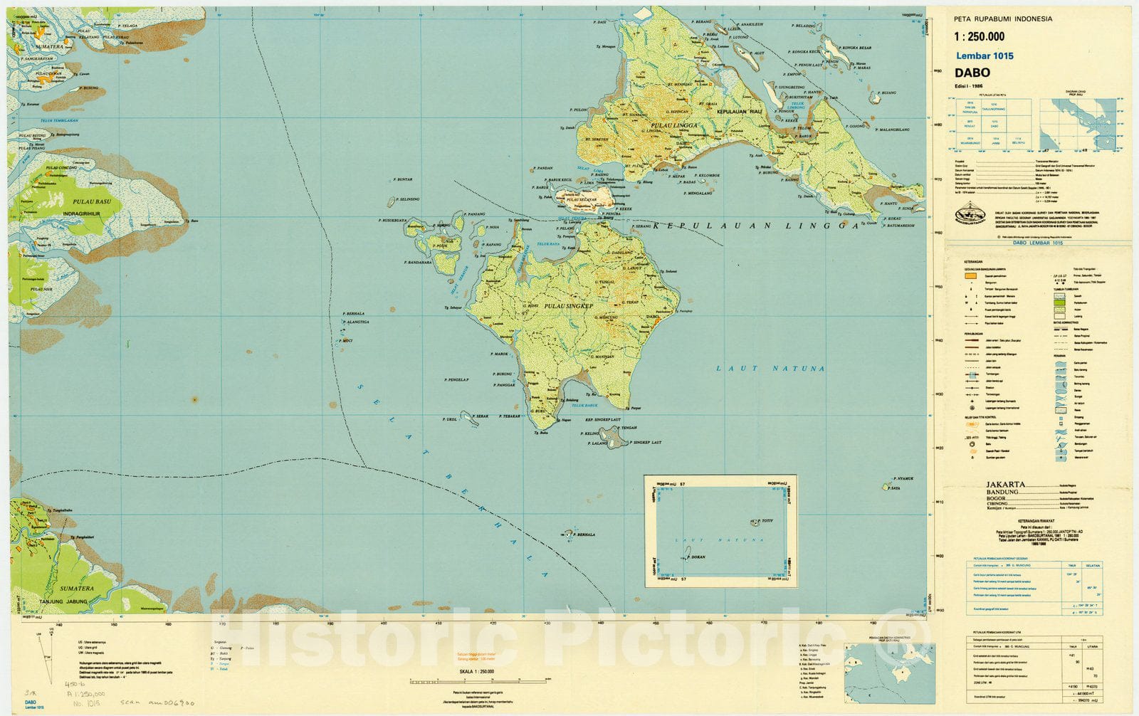 Map : Dabo, Indonesia 1986, Peta rupabumi Indonesia, 1:250,000 , Antique Vintage Reproduction