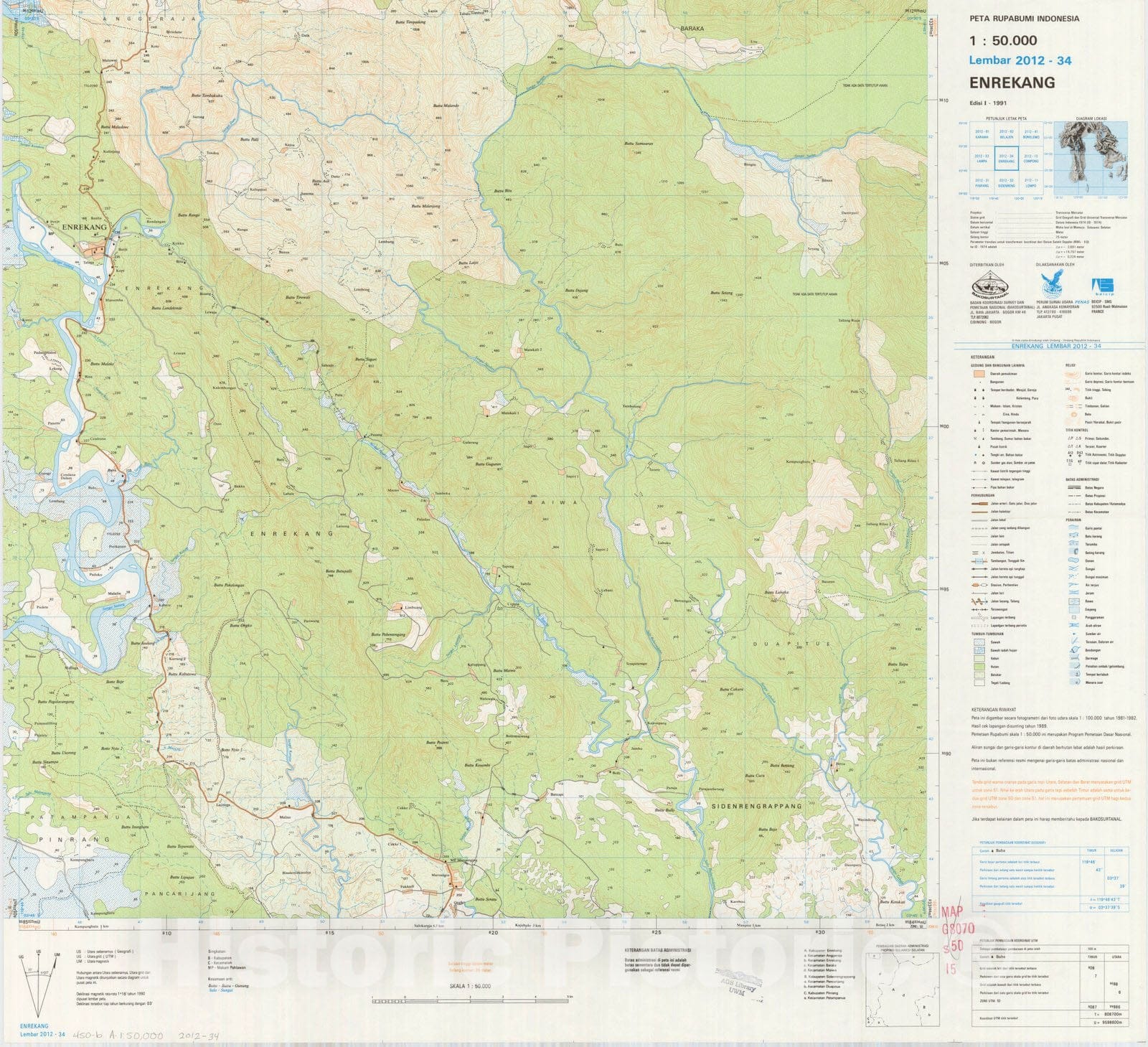 Map : Enrekang, Indonesia 1991, Peta rupabumi Indonesia, 1:50,000 , Antique Vintage Reproduction