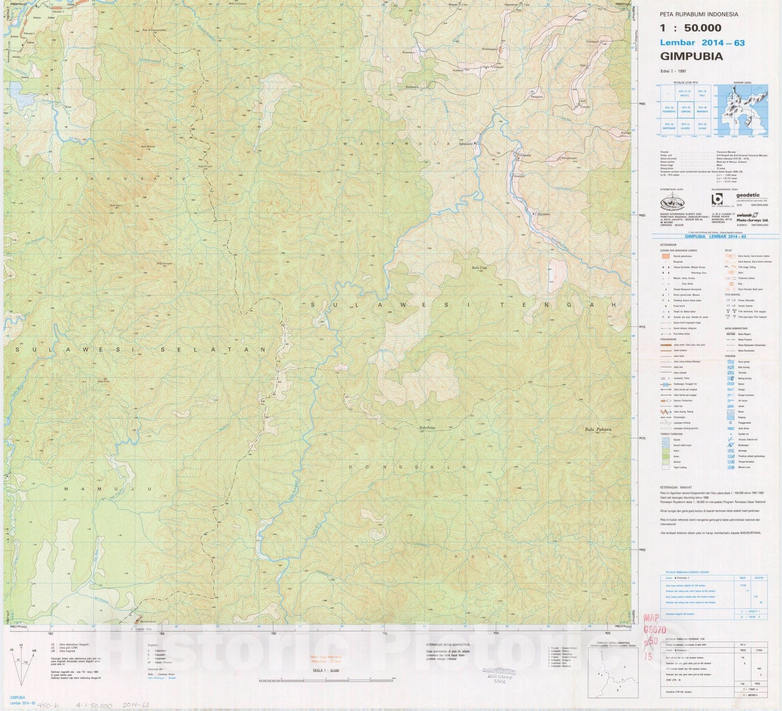 Map : Gimpubia, Indonesia 1991, Peta rupabumi Indonesia, 1:50,000 , Antique Vintage Reproduction