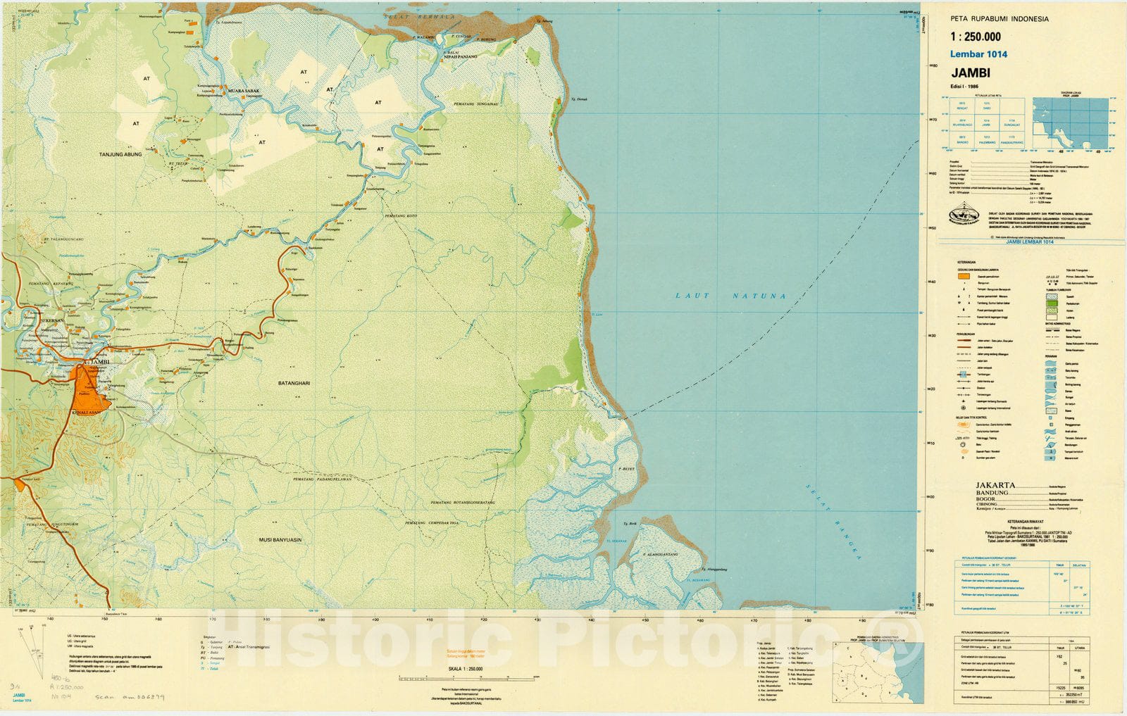Map : Jambi, Indonesia 1986, Peta rupabumi Indonesia, 1:250,000 , Antique Vintage Reproduction