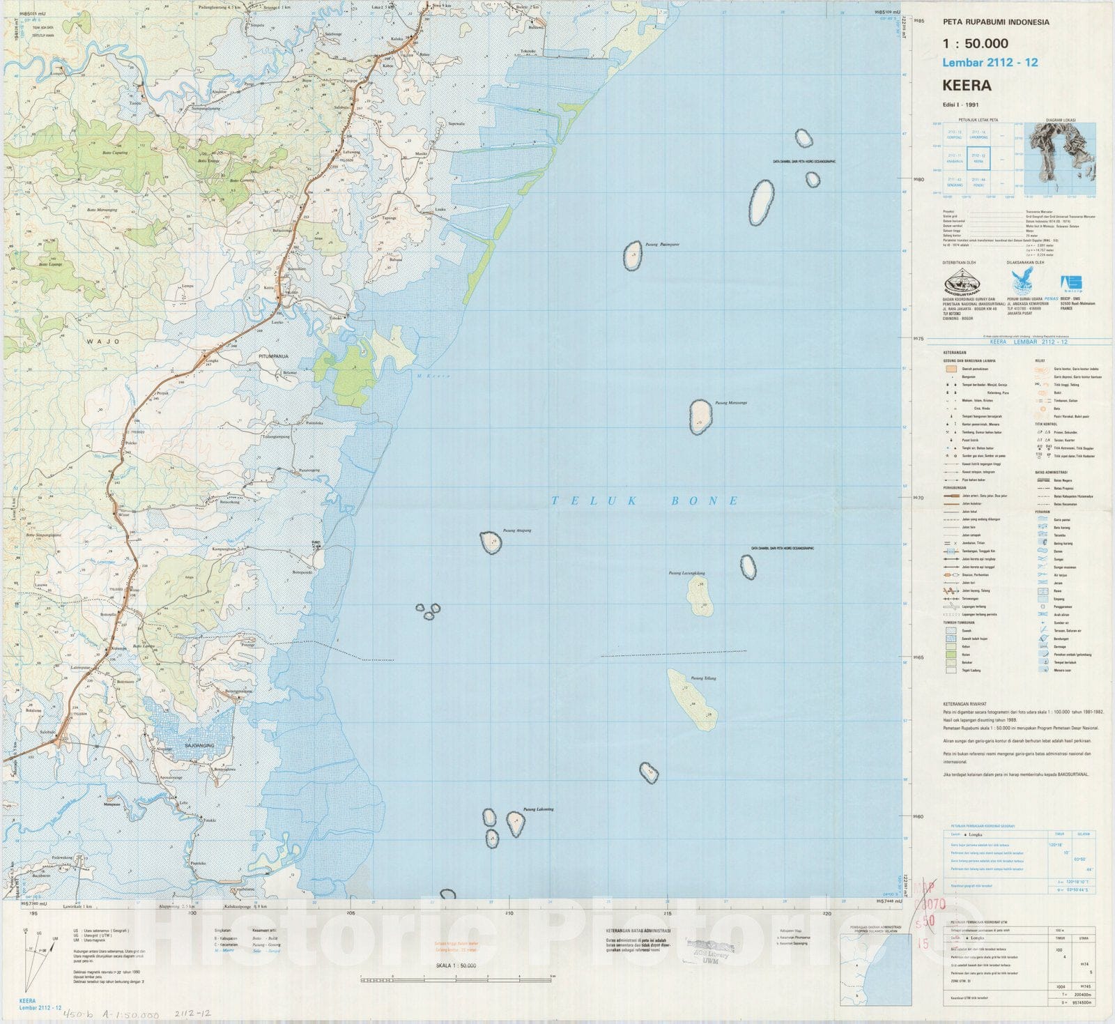 • Map : Keera, Indonesia 1991, Peta rupabumi Indonesia, 1:50,000 , Antique Vintage Reproduction