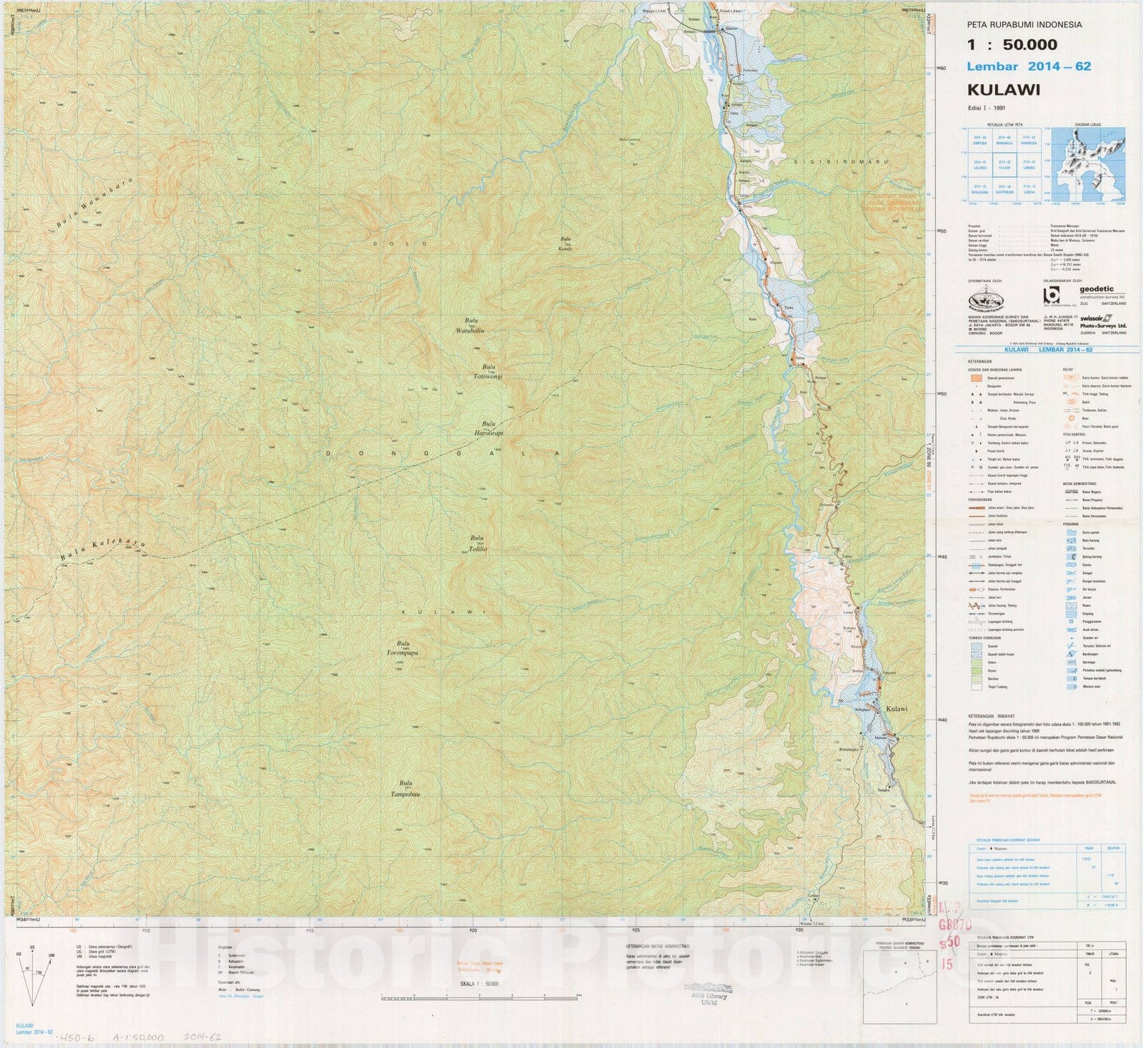 Map : Kulawi, Indonesia 1991, Peta rupabumi Indonesia, 1:50,000 , Antique Vintage Reproduction