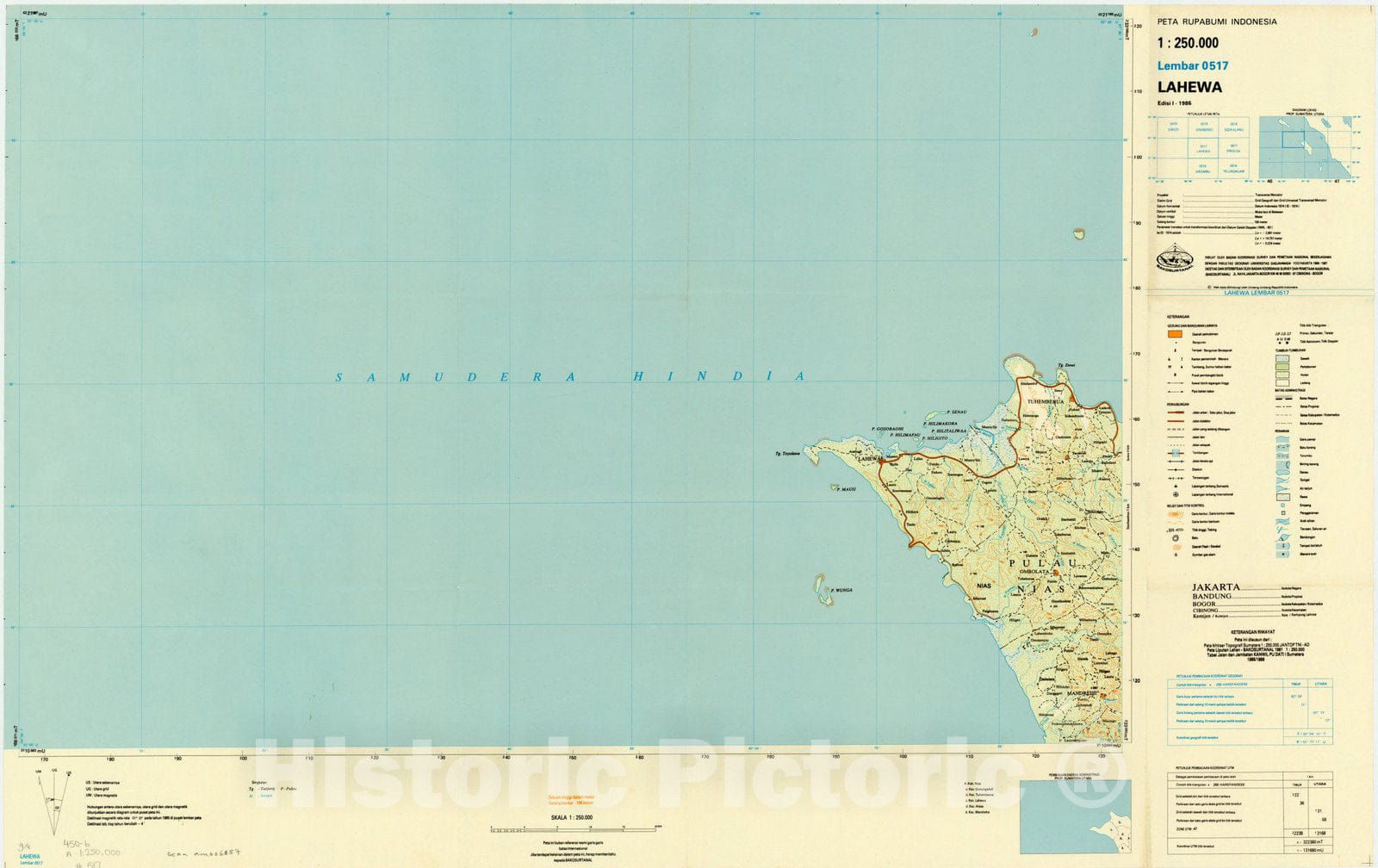 Map : Lahewa, Indonesia 1985, Peta rupabumi Indonesia, 1:250,000 , Antique Vintage Reproduction
