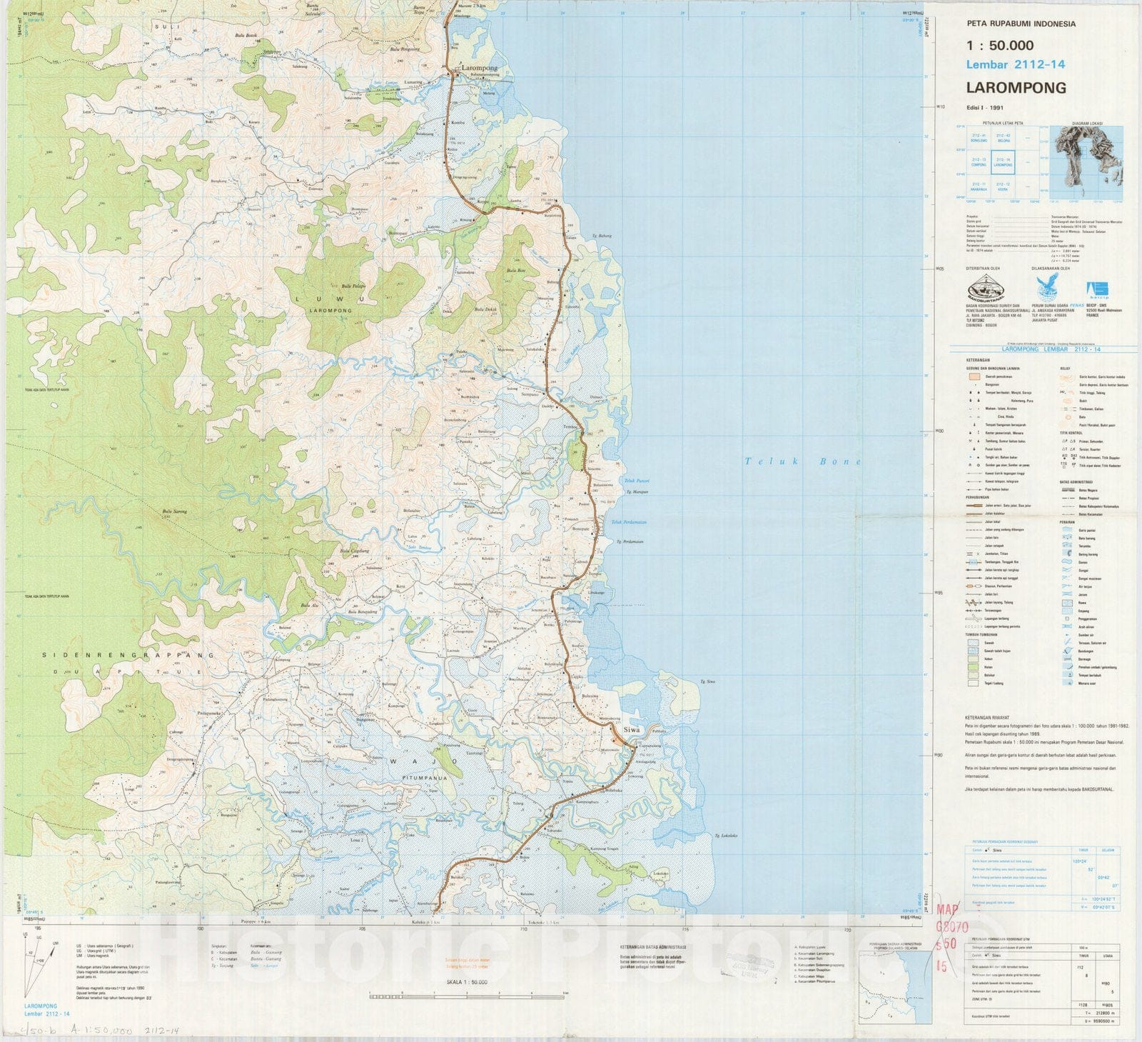 Map : Larompong, Indonesia 1991, Peta rupabumi Indonesia, 1:50,000 , Antique Vintage Reproduction