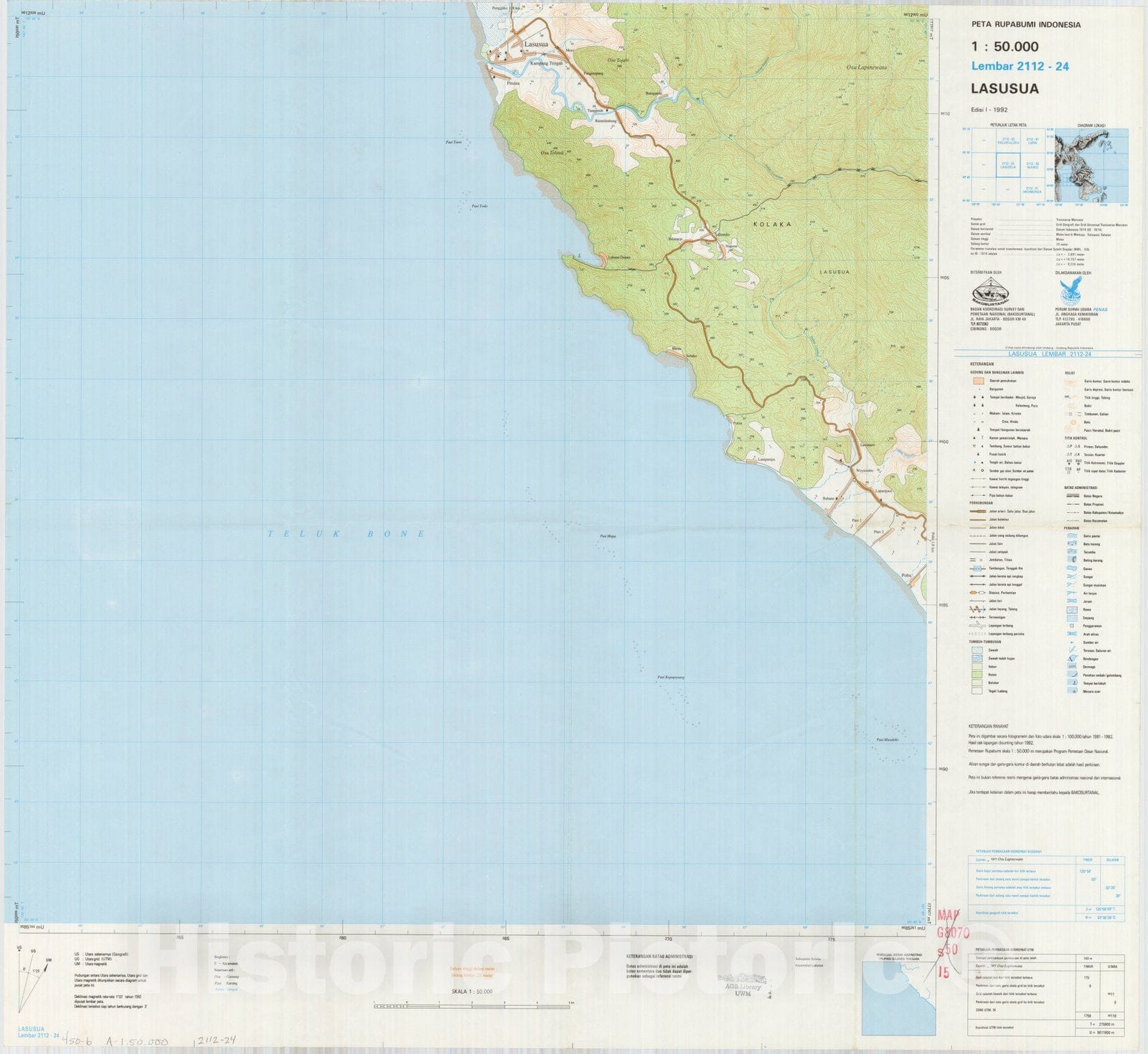 Map : Lasusua, Indonesia 1991, Peta rupabumi Indonesia, 1:50,000 , Antique Vintage Reproduction