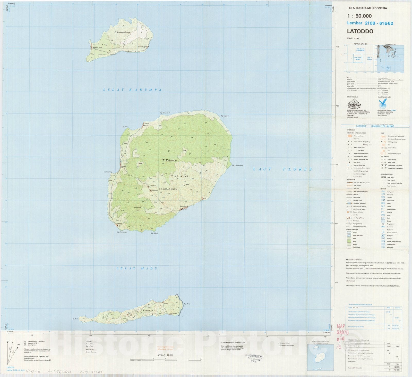 Map : Latoddo, Indonesia 1991, Peta rupabumi Indonesia, 1:50,000 , Antique Vintage Reproduction