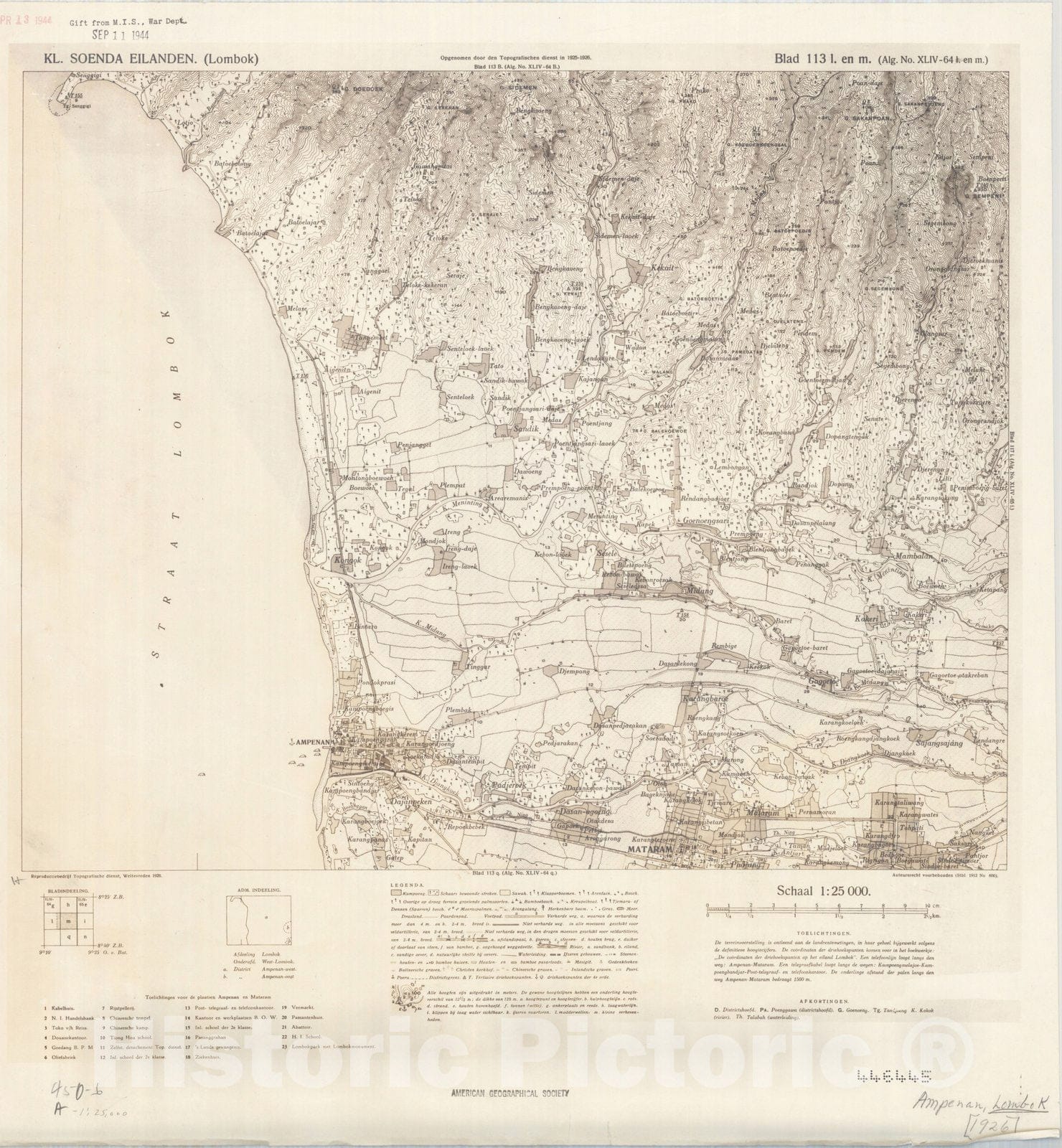 Map : Lombok, Indonesia 1930 7, Kl. Soenda Eilanden (Lombok) , Antique Vintage Reproduction