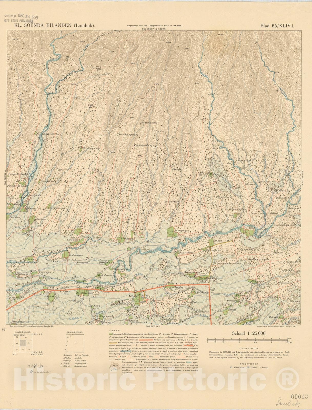 Map : Lombok, Indonesia 1931 1, Kl. Soenda Eilanden (Lombok) , Antique Vintage Reproduction