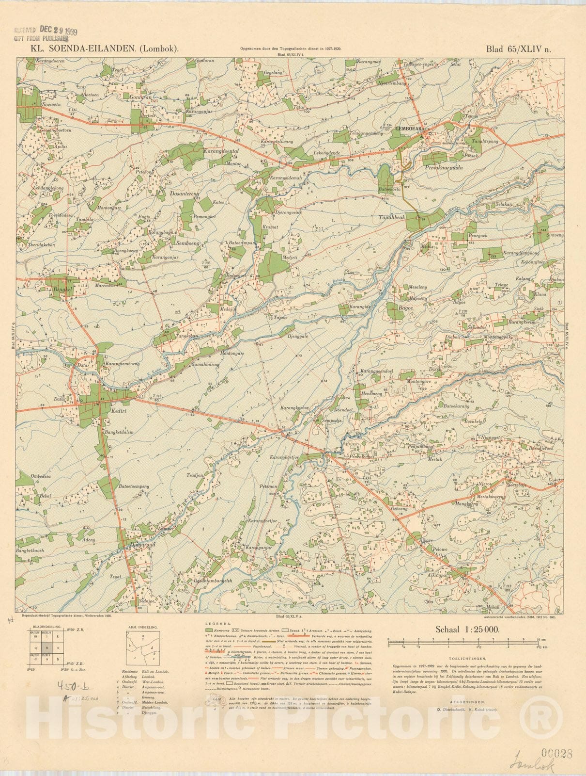• .Map : Lombok, Indonesia 1931 3, Kl. Soenda Eilanden (Lombok) , Antique Vintage Reproduction