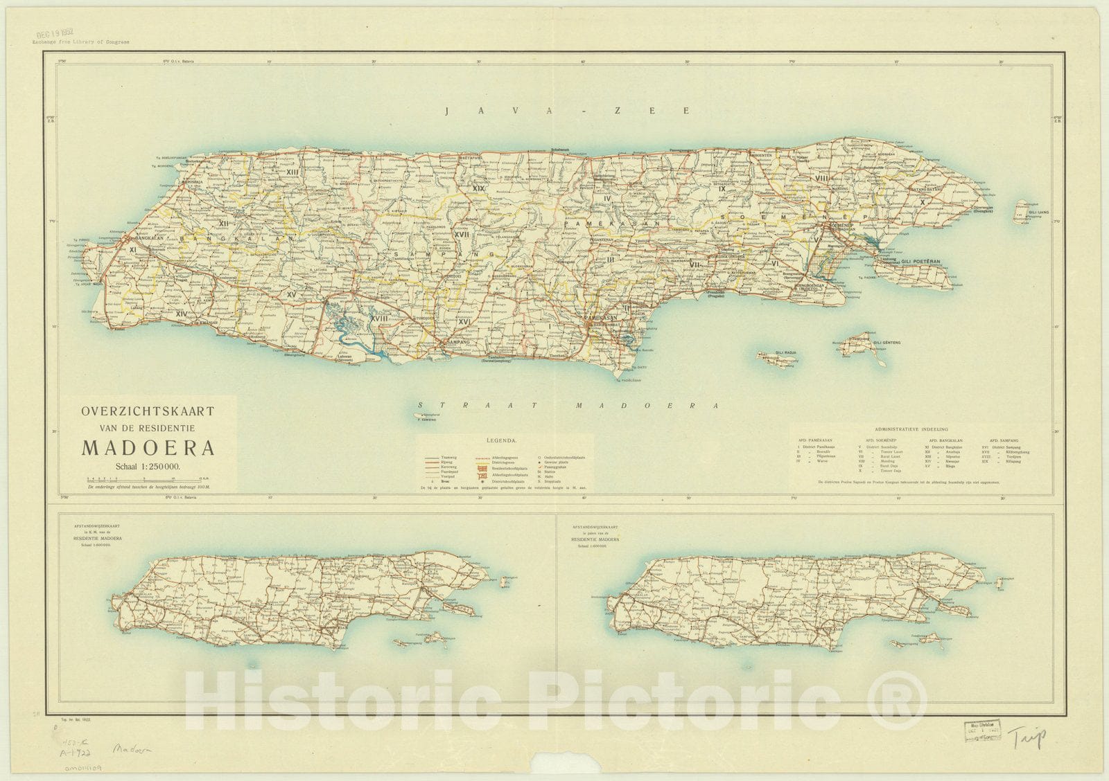 Map : Madura Island, Indonesia 1922, Overzichtskaart van de residentie Madoera, Antique Vintage Reproduction