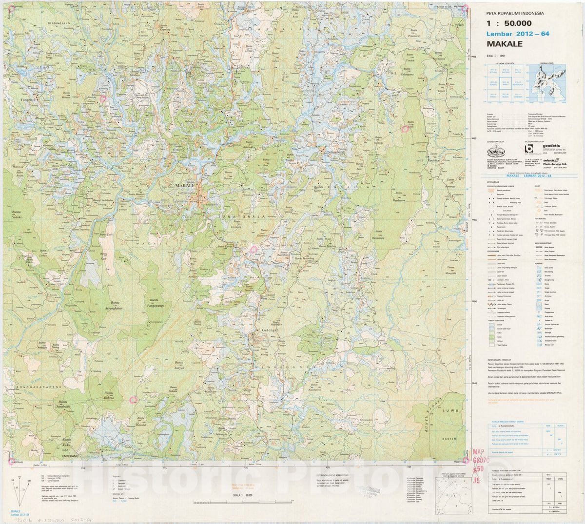 Map : Makale, Indonesia 1991, Peta rupabumi Indonesia, 1:50,000 , Antique Vintage Reproduction