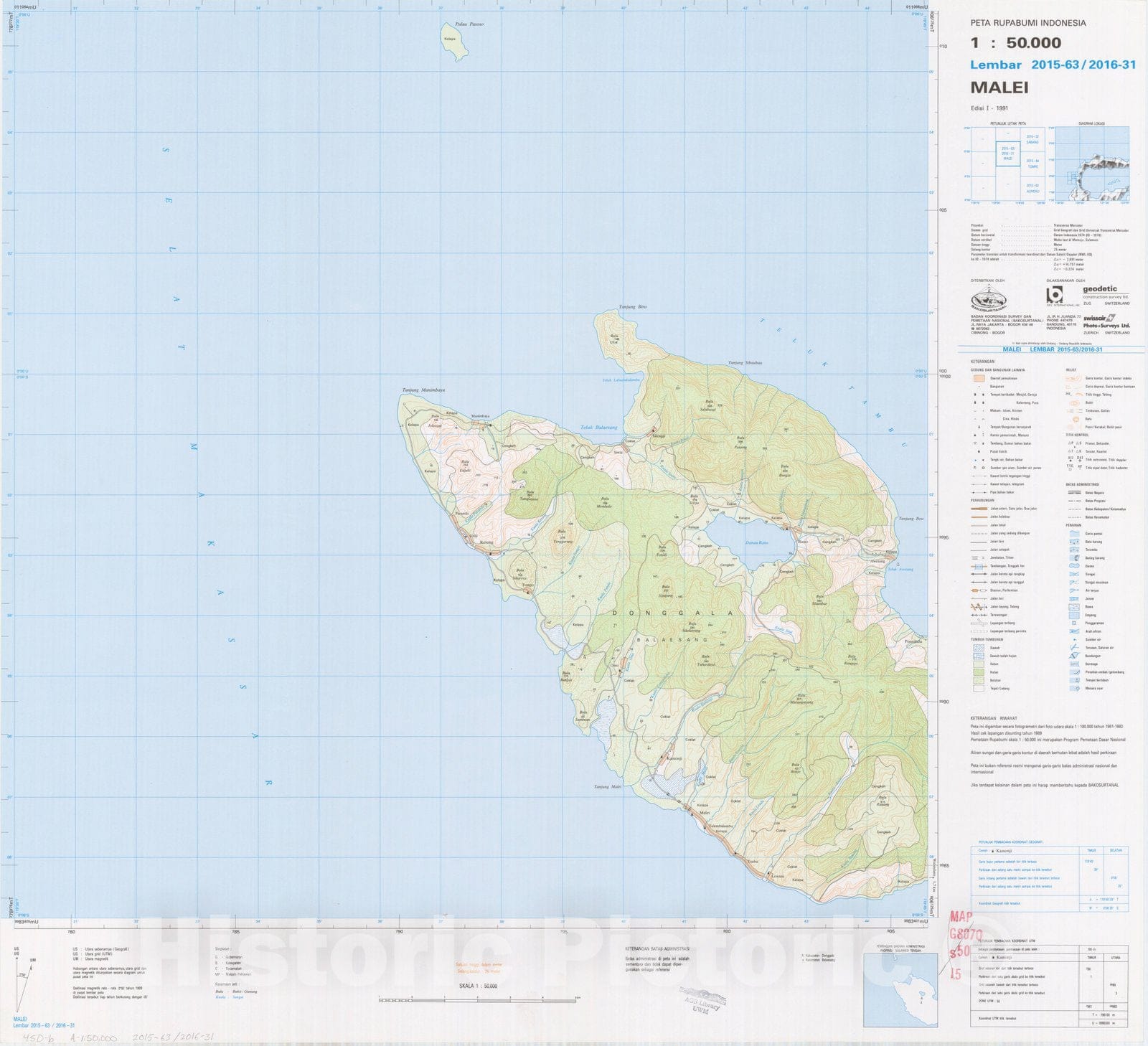 Map : Malei, Indonesia 1991, Peta rupabumi Indonesia, 1:50,000 , Antique Vintage Reproduction
