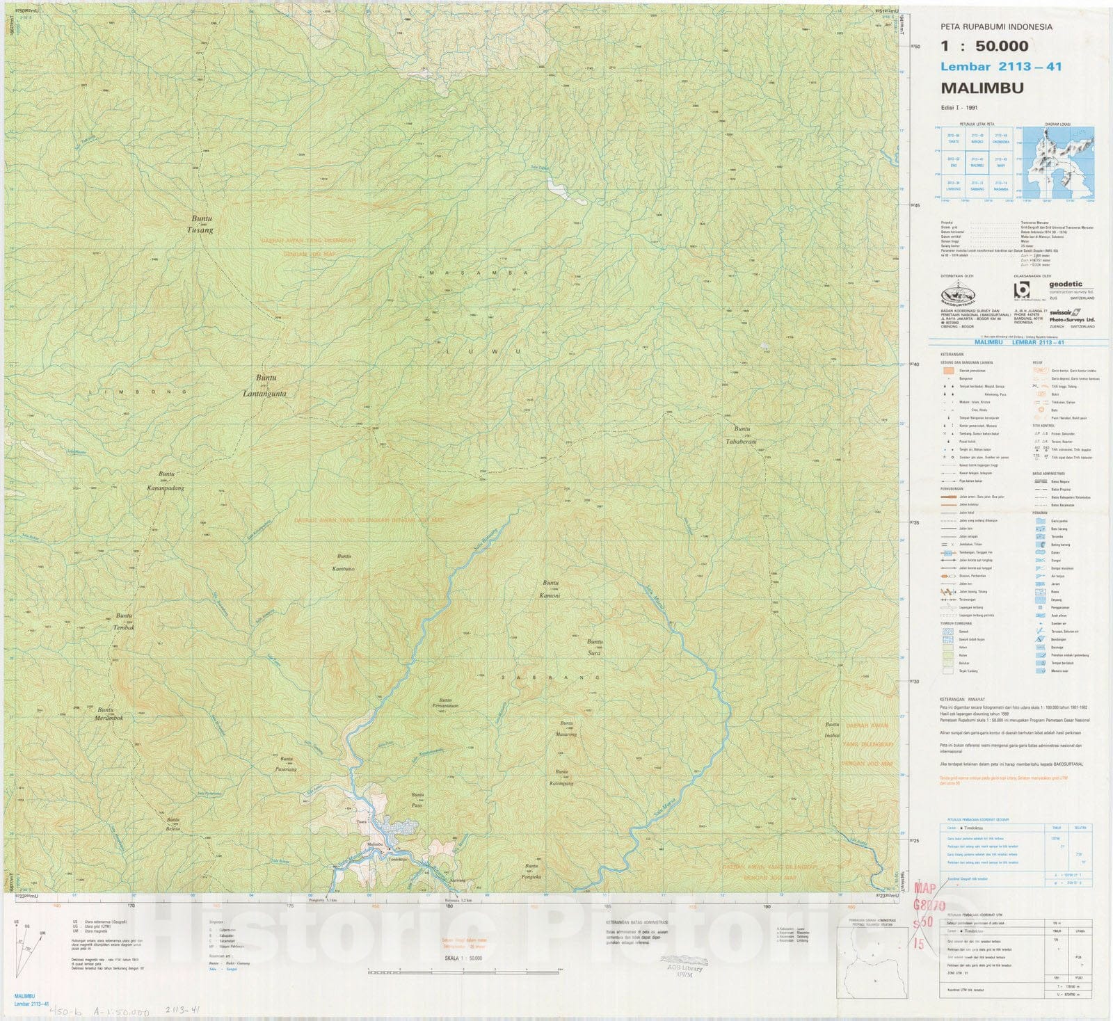 Map : Malimbu, Indonesia 1991, Peta rupabumi Indonesia, 1:50,000 , Antique Vintage Reproduction