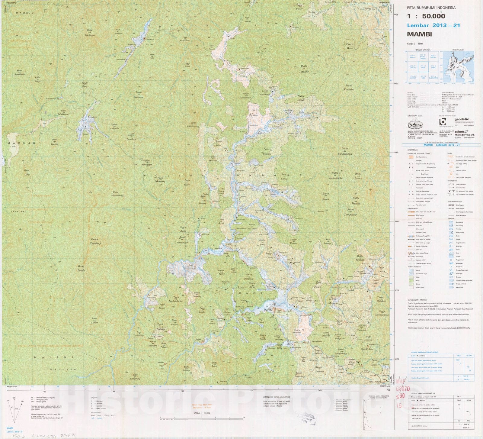 Map : Mambi, Indonesia 1991, Peta rupabumi Indonesia, 1:50,000 , Antique Vintage Reproduction