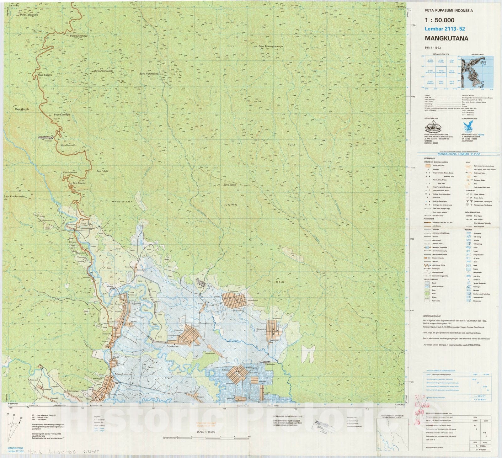 Map : Mangkutana, Indonesia 1991, Peta rupabumi Indonesia, 1:50,000 , Antique Vintage Reproduction