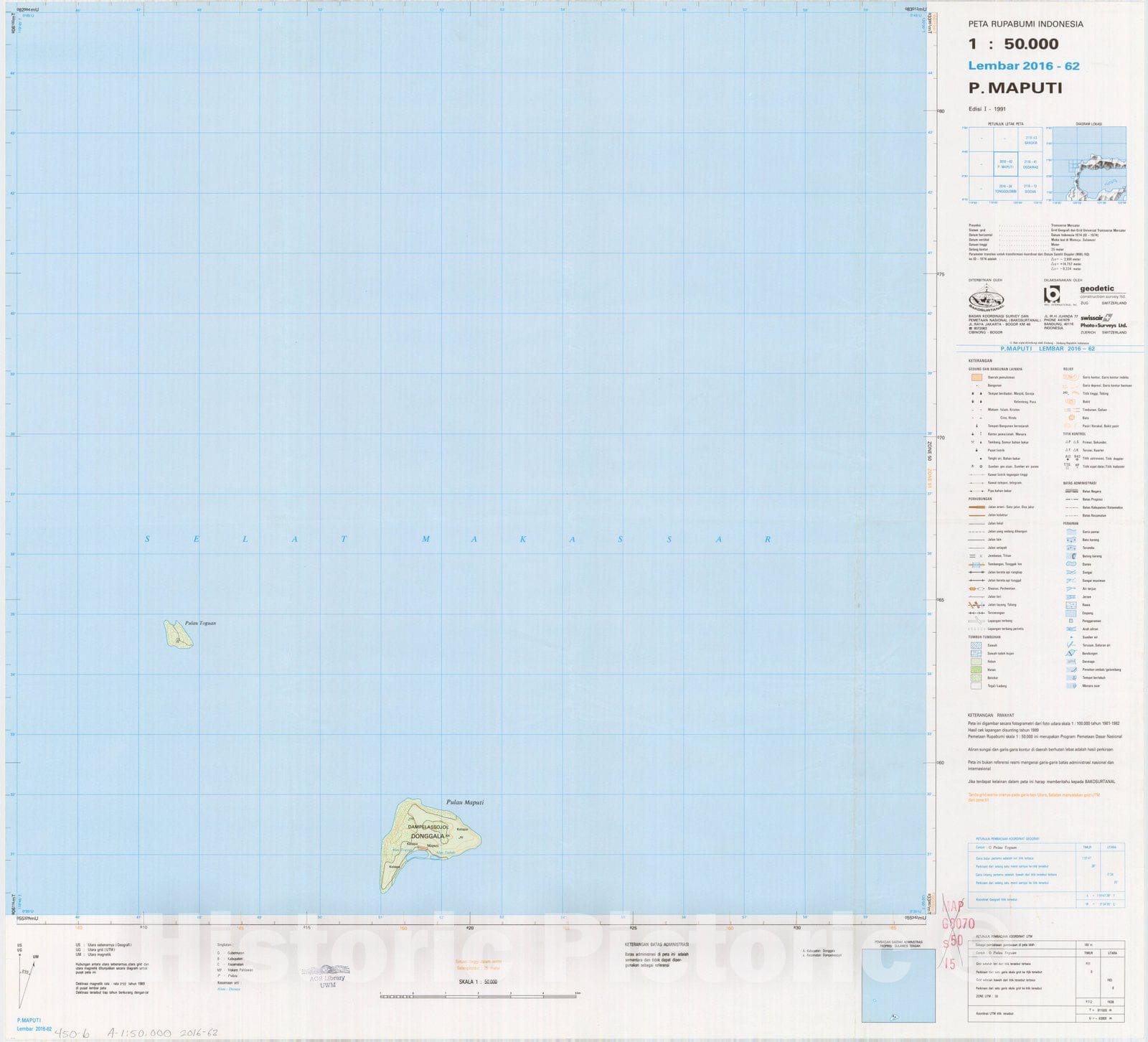 Map : P. Maputi, Indonesia 1991, Peta rupabumi Indonesia, 1:50,000 , Antique Vintage Reproduction