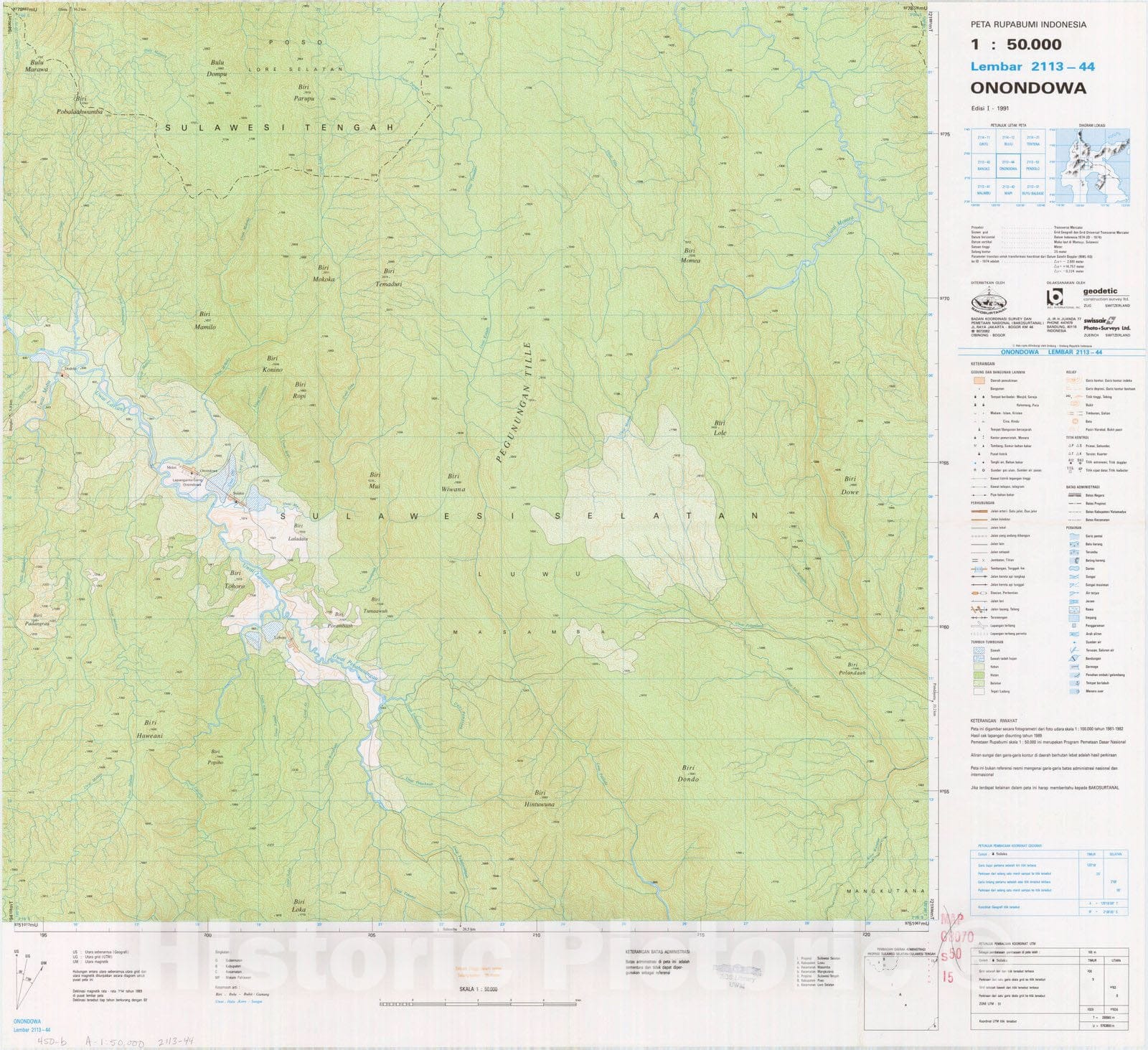 Map : Onondowa, Indonesia 1991, Peta rupabumi Indonesia, 1:50,000 , Antique Vintage Reproduction