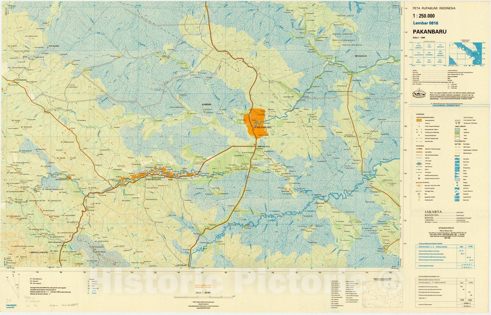 Map : Pakanbaru, Indonesia 1985, Peta rupabumi Indonesia, 1:250,000 , Antique Vintage Reproduction