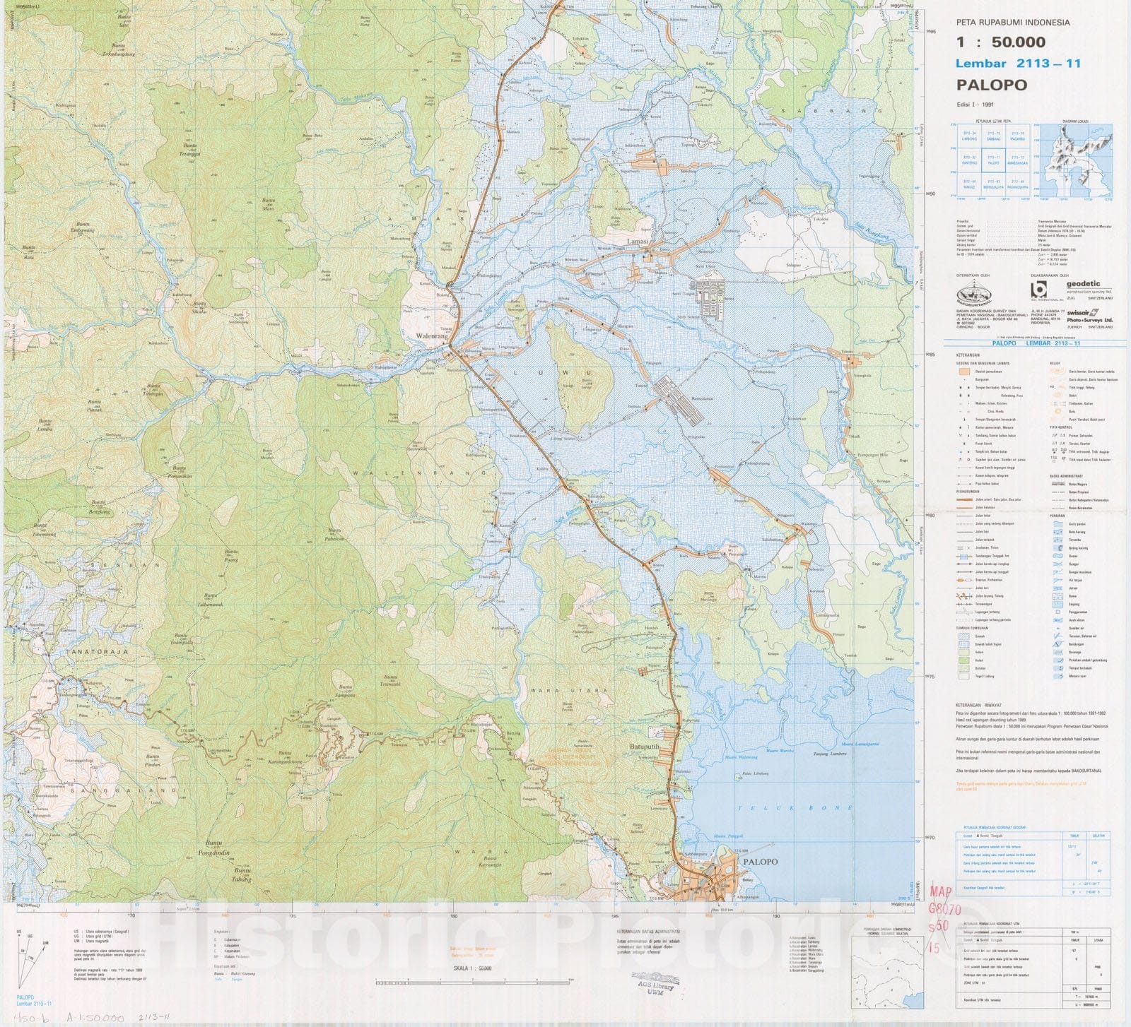 Map : Palopo, Indonesia 1991, Peta rupabumi Indonesia, 1:50,000 , Antique Vintage Reproduction