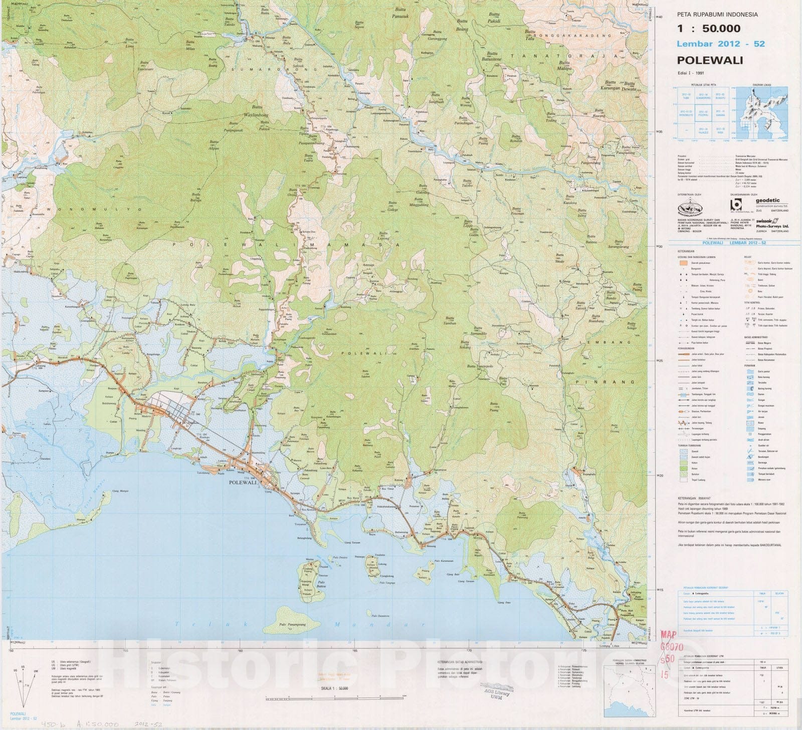 Map : Polewali, Indonesia 1991, Peta rupabumi Indonesia, 1:50,000 , Antique Vintage Reproduction