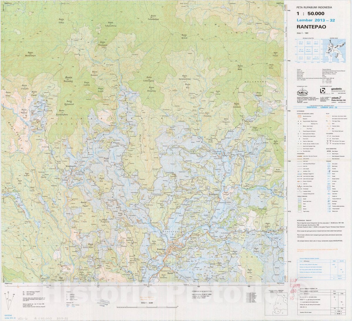 Map : Rantepao, Indonesia 1991, Peta rupabumi Indonesia, 1:50,000 , Antique Vintage Reproduction
