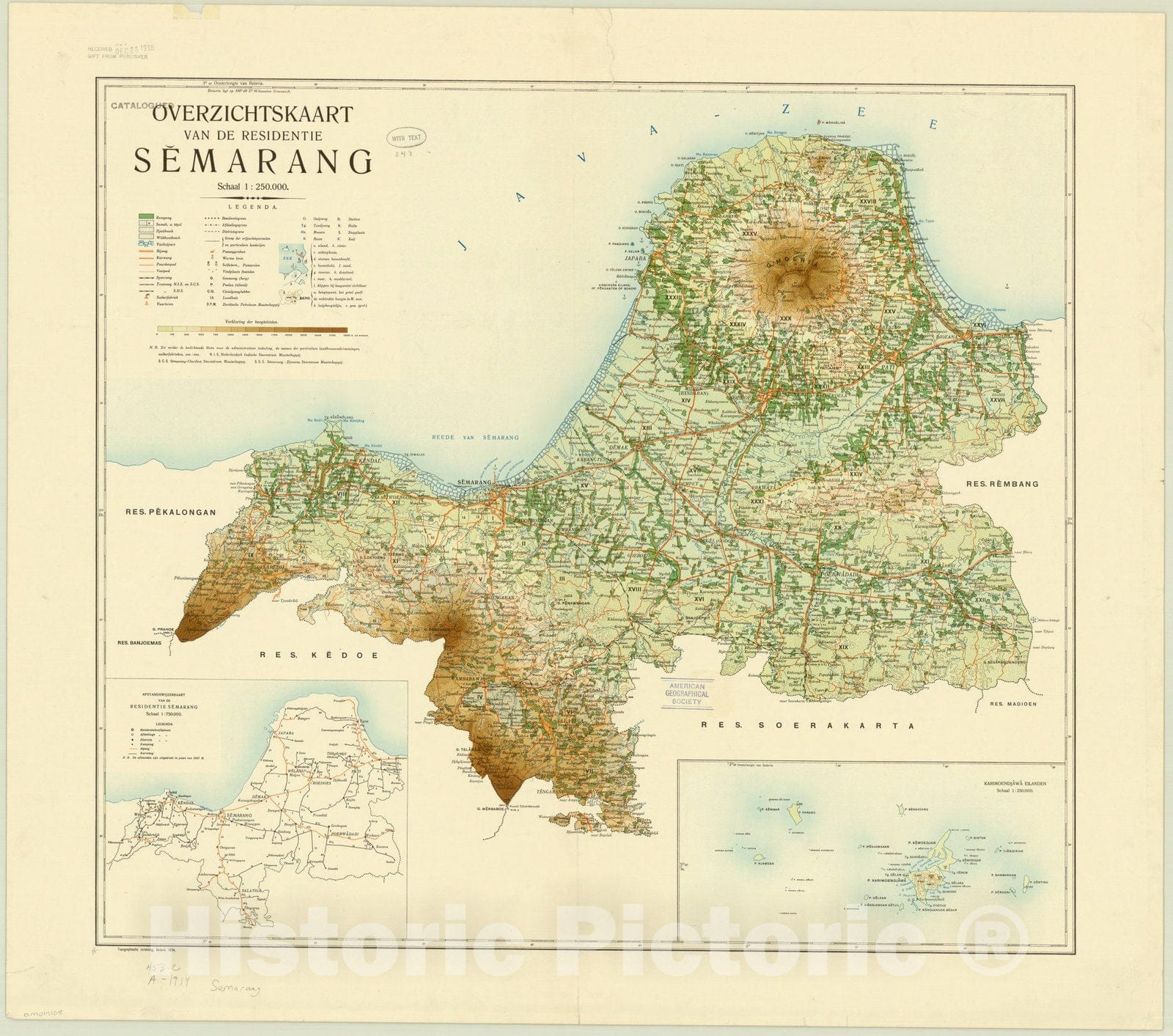Map : Semarang, Indonesia 1914, Overzichtskaart van de residentie Semarang, Antique Vintage Reproduction