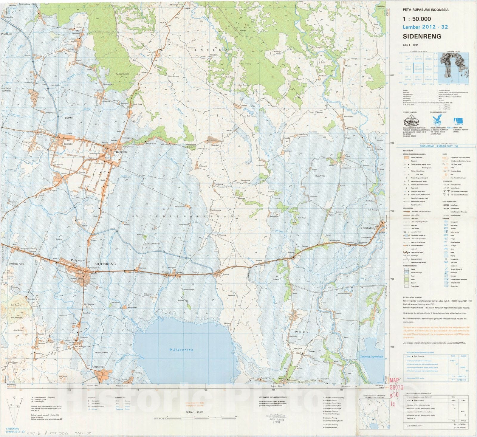 Map : Sidenreng, Indonesia 1991, Peta rupabumi Indonesia, 1:50,000 , Antique Vintage Reproduction