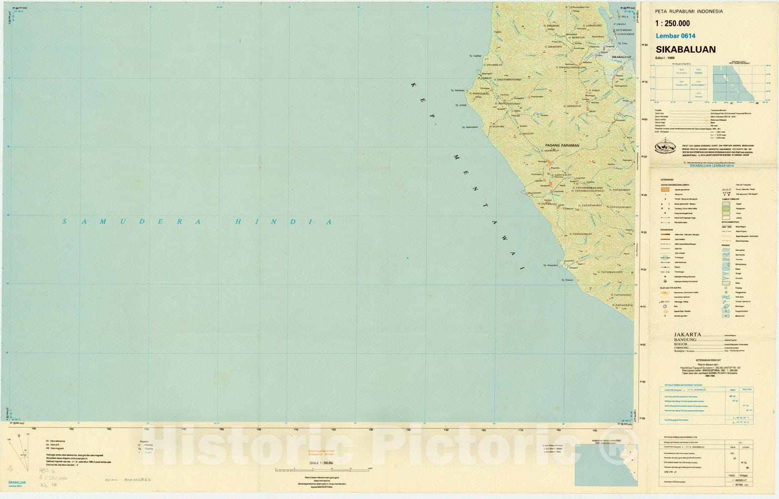 • Map : Sikabaluan, Indonesia 1985, Peta rupabumi Indonesia, 1:250,000 , Antique Vintage Reproduction