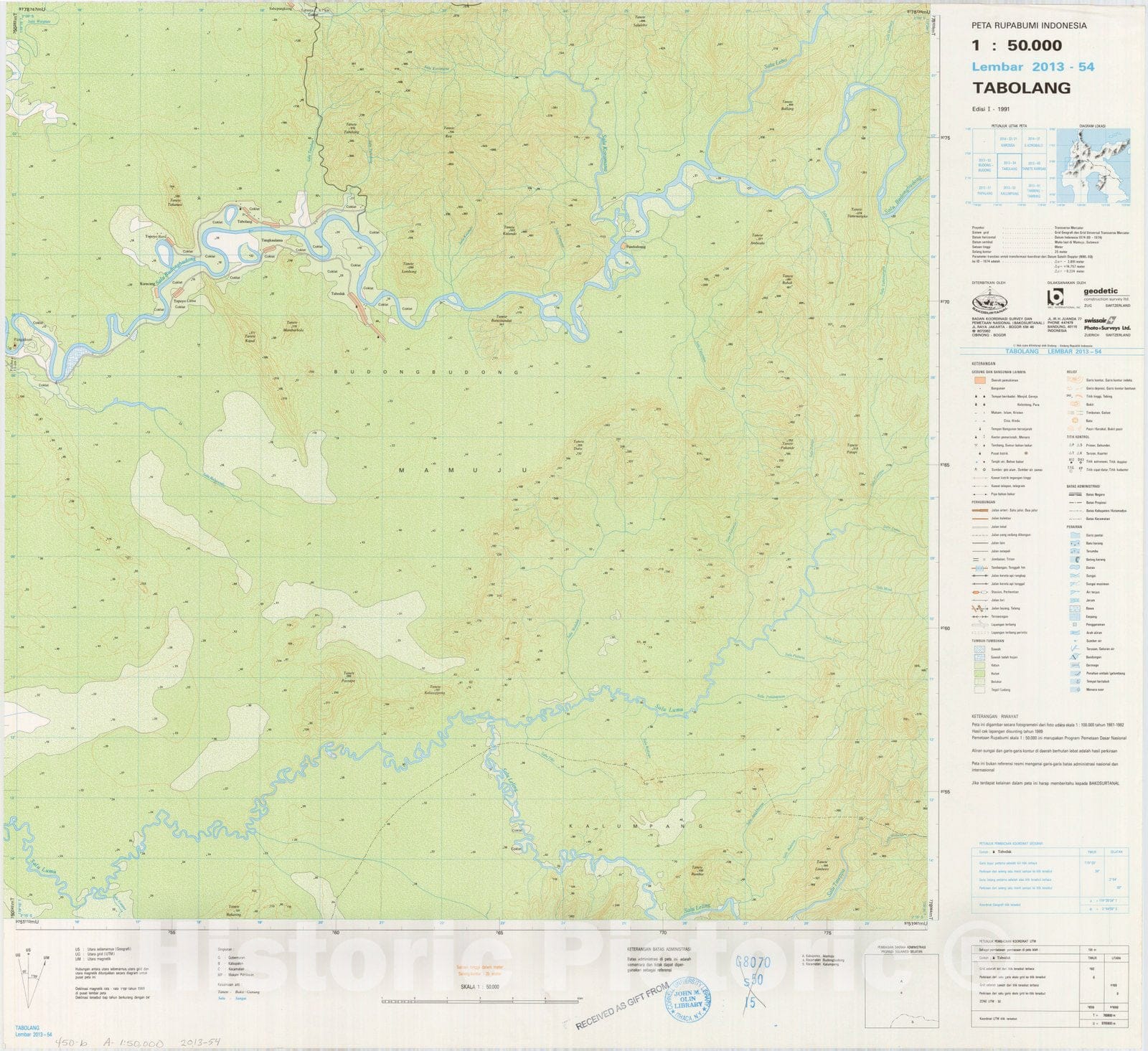 Map : Tabolang, Indonesia 1991, Peta rupabumi Indonesia, 1:50,000 , Antique Vintage Reproduction
