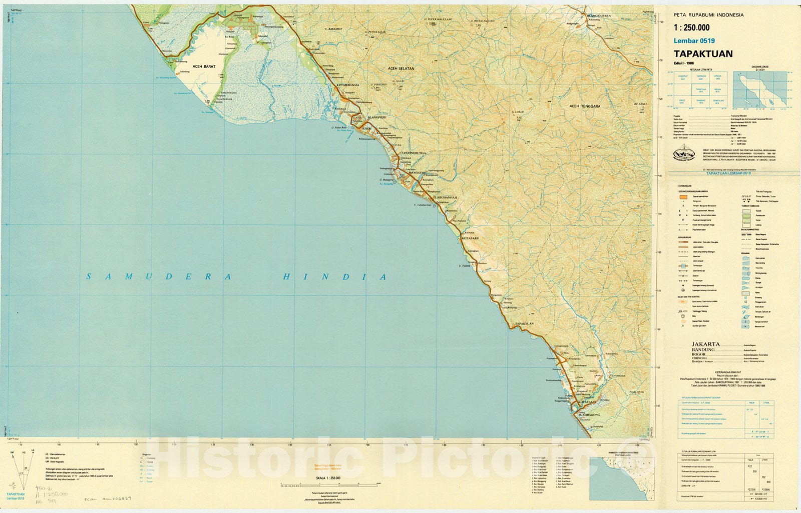 Map : Tapaktuan, Indonesia 1985, Peta rupabumi Indonesia, 1:250,000 , Antique Vintage Reproduction