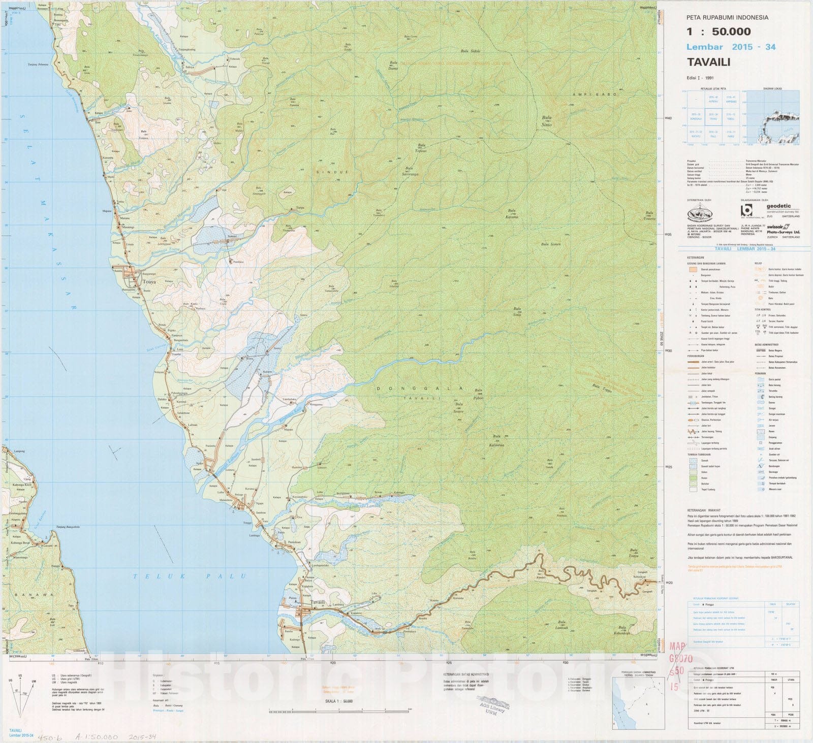 Map : Tavaili, Indonesia 1991, Peta rupabumi Indonesia, 1:50,000 , Antique Vintage Reproduction