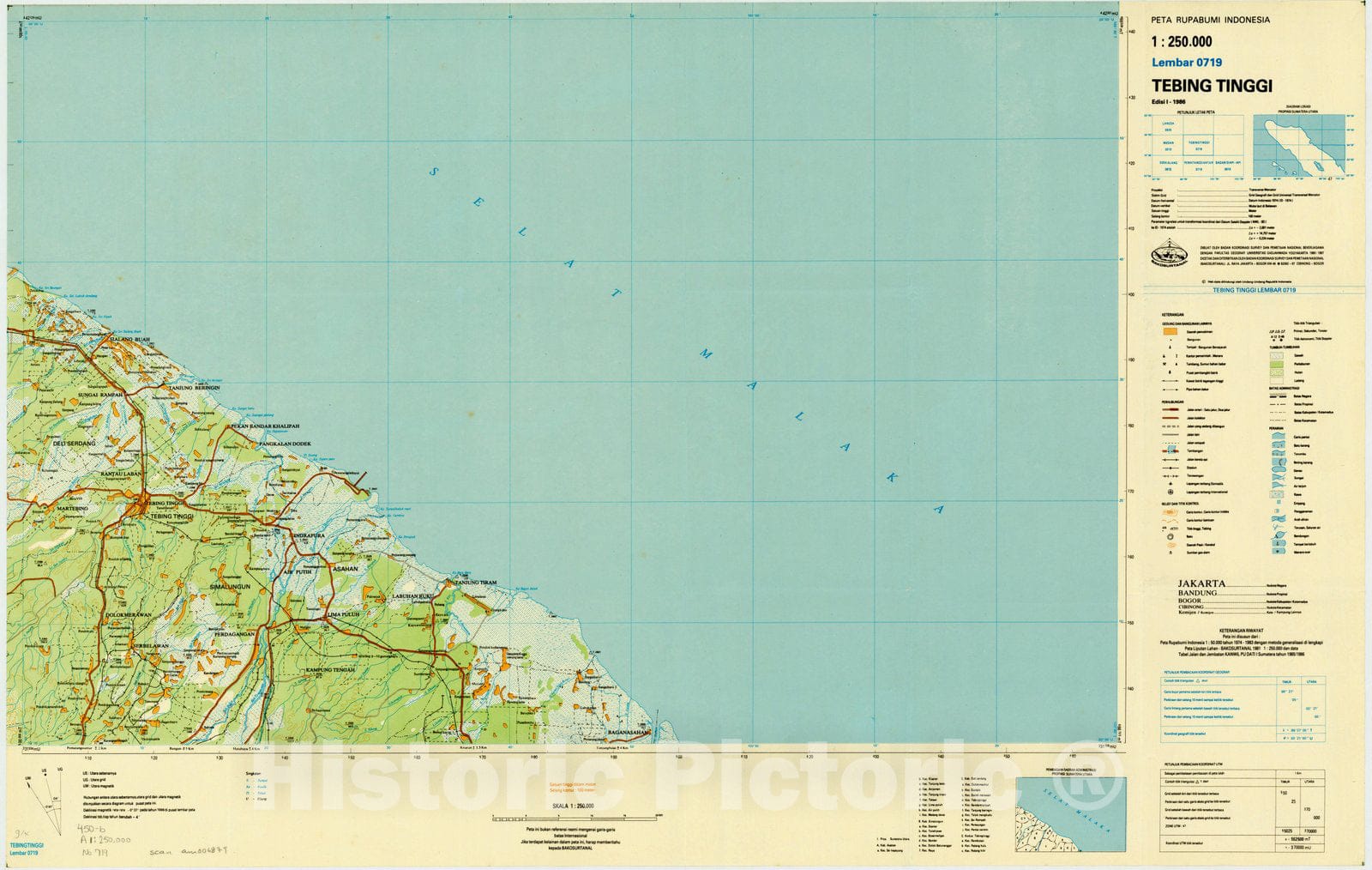 Map : Tebing Tinggi, Indonesia 1985, Peta rupabumi Indonesia, 1:250,000 , Antique Vintage Reproduction
