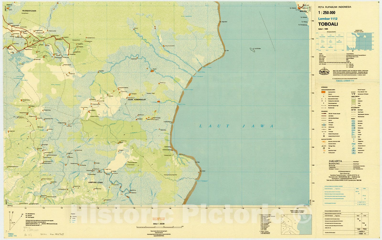 Map : Toboali, Indonesia 1986, Peta rupabumi Indonesia, 1:250,000 , Antique Vintage Reproduction