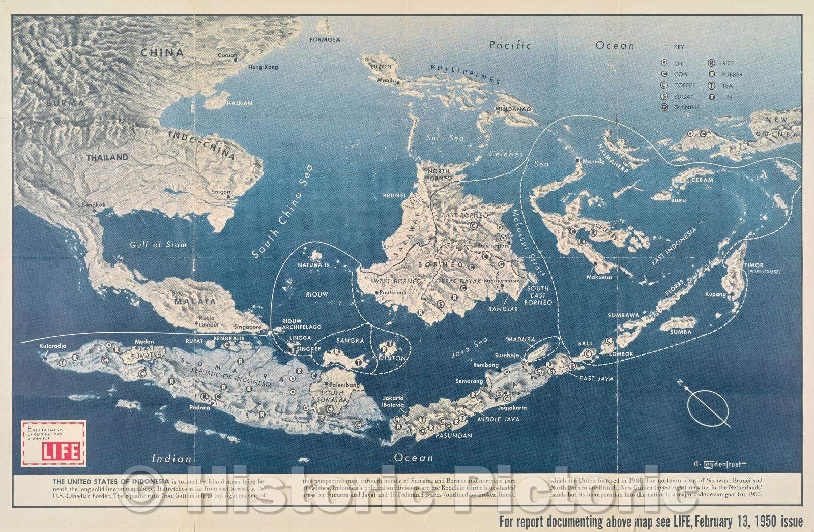 Historic Map : The United States of Indonesia . . ., c. 1950 , Vintage Wall Art