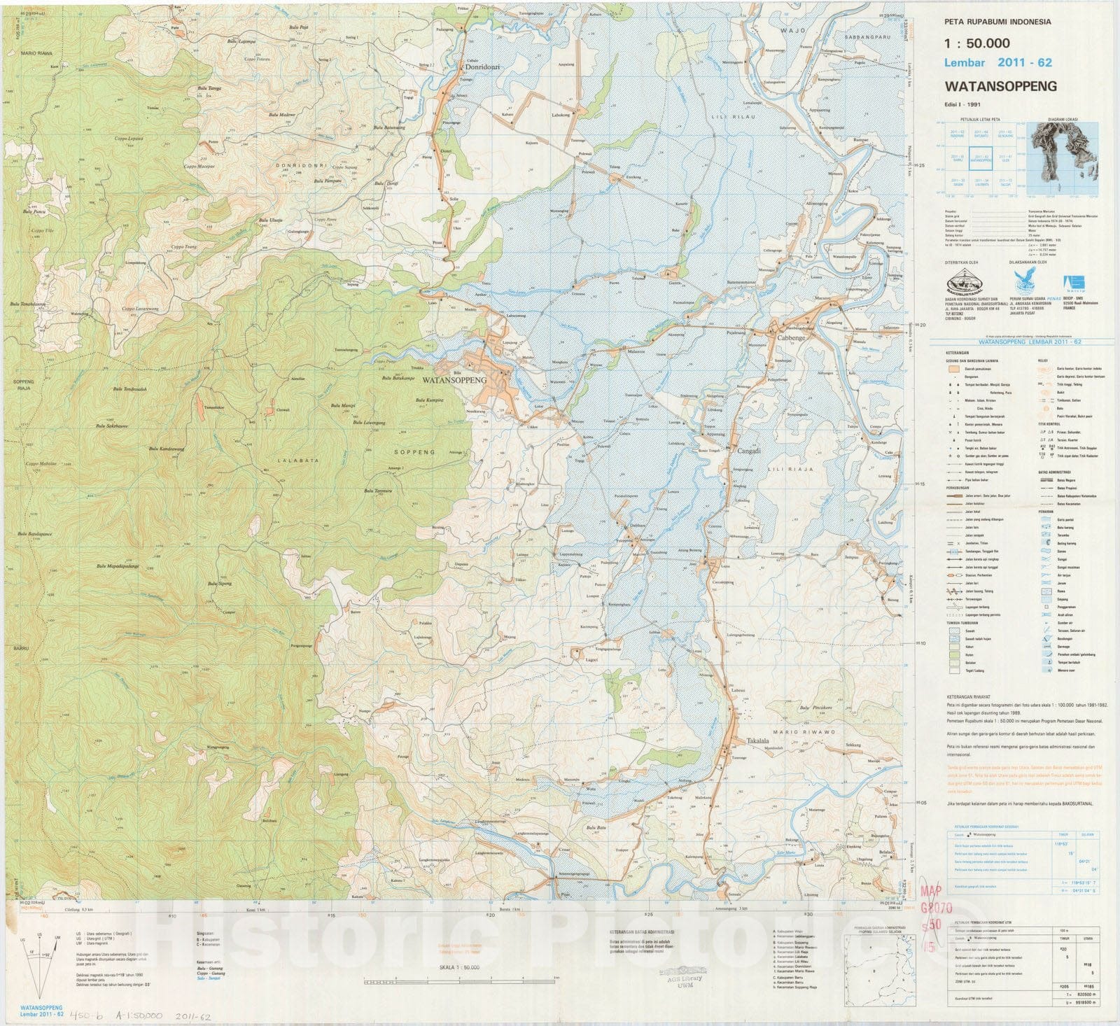 Map : Watansoppeng, Indonesia 1991, Peta rupabumi Indonesia, 1:50,000 , Antique Vintage Reproduction