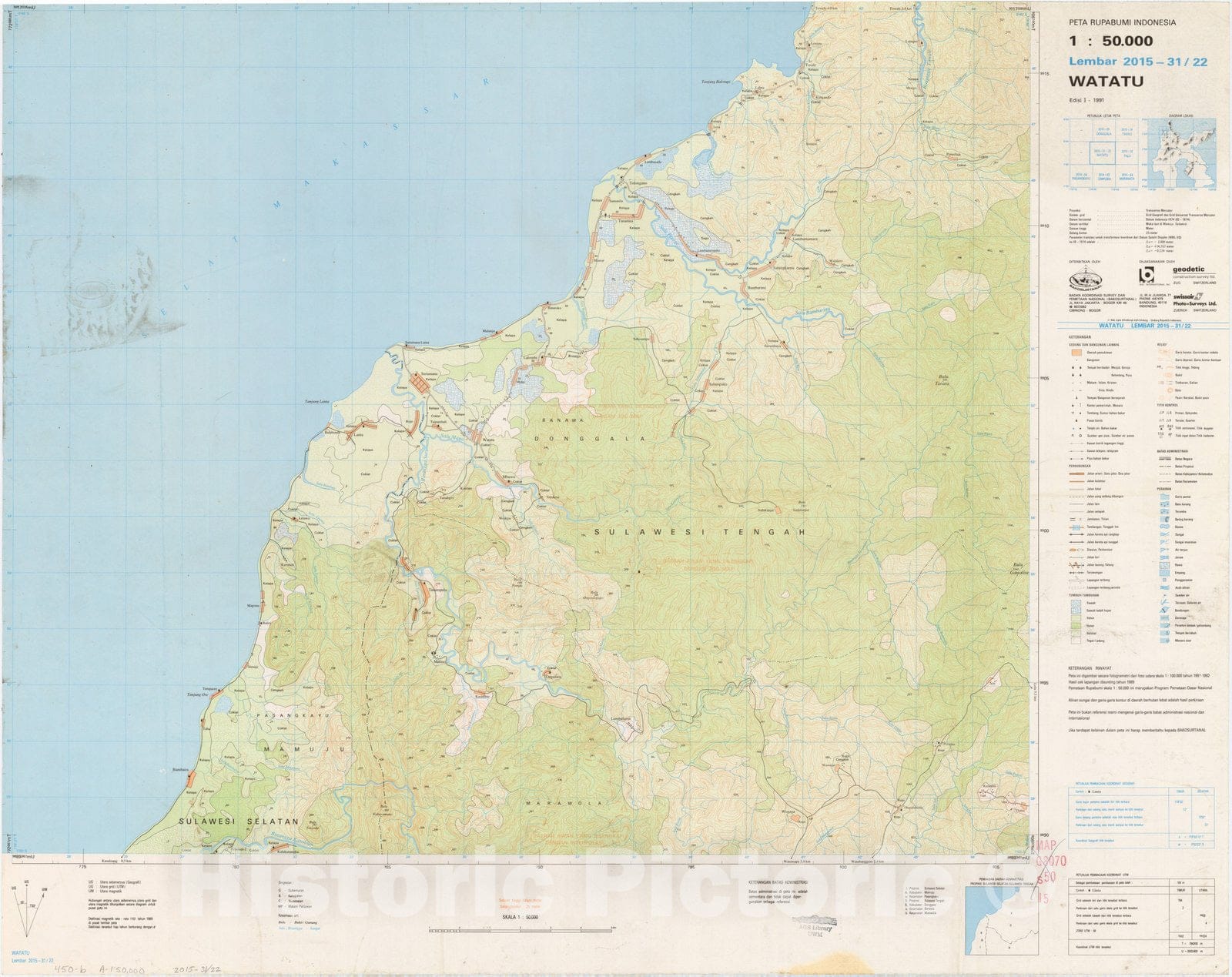 • Map : Watatu, Indonesia 1991, Peta rupabumi Indonesia, 1:50,000 , Antique Vintage Reproduction