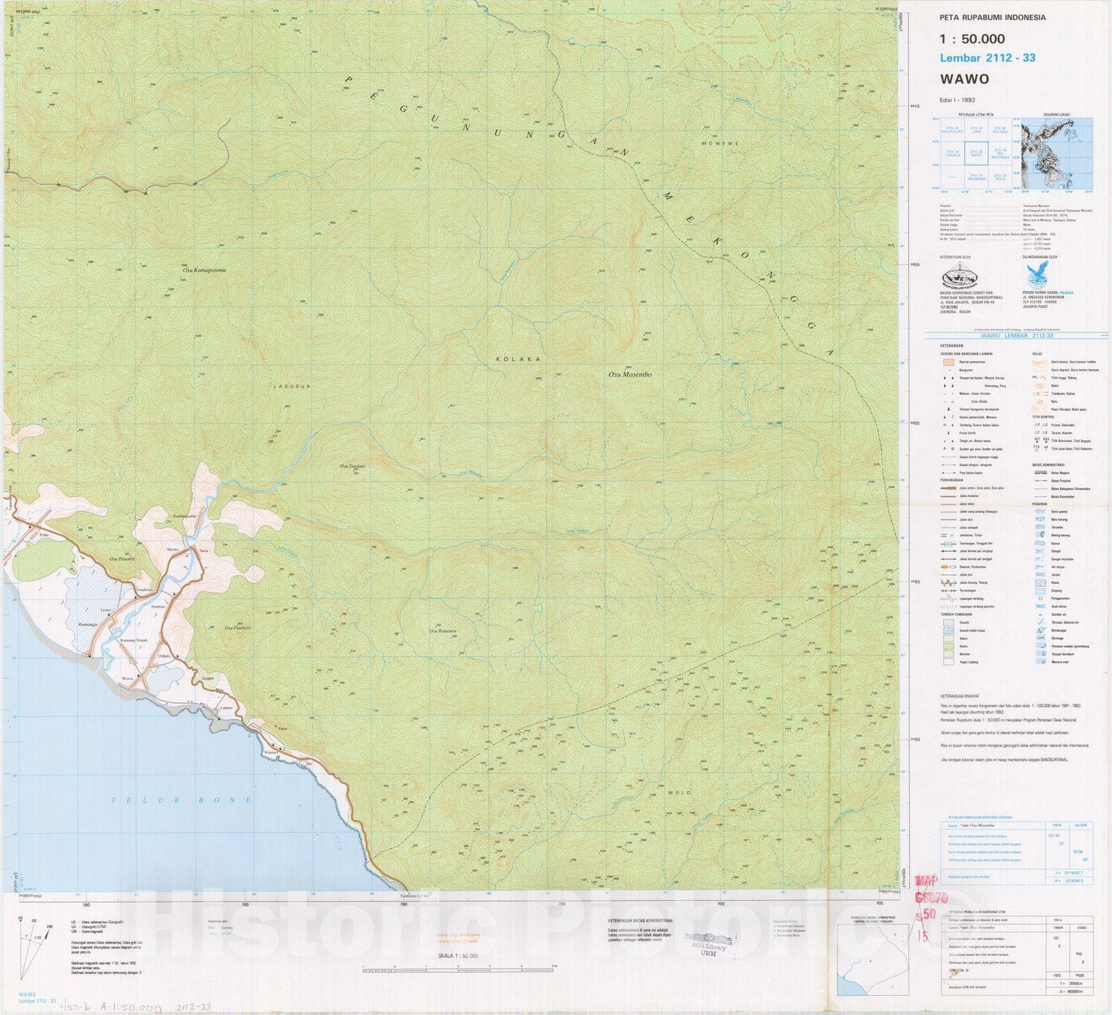 • Map : Wawo, Indonesia 1991, Peta rupabumi Indonesia, 1:50,000 , Antique Vintage Reproduction