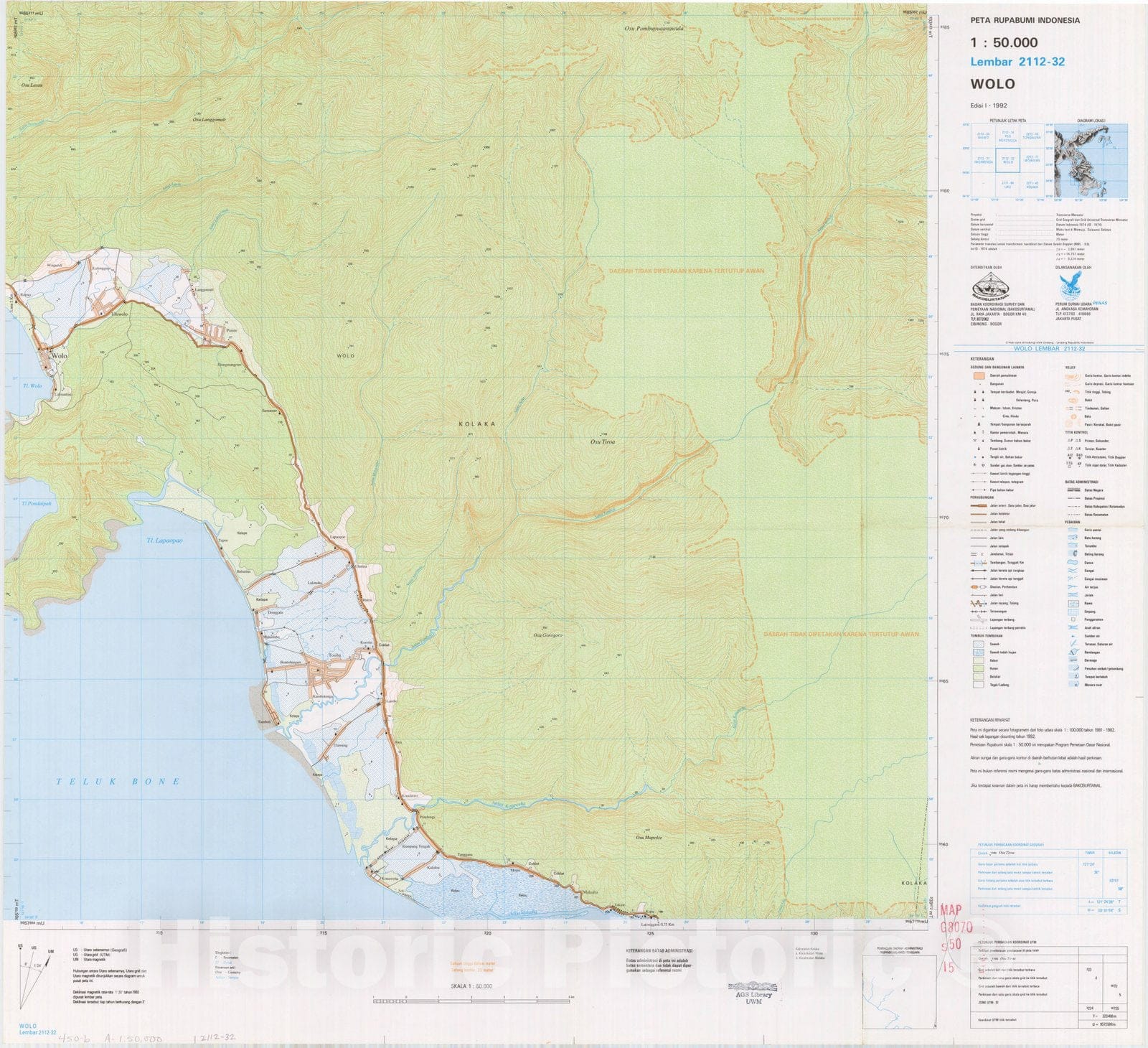 Map : Wolo, Indonesia 1991, Peta rupabumi Indonesia, 1:50,000 , Antique Vintage Reproduction
