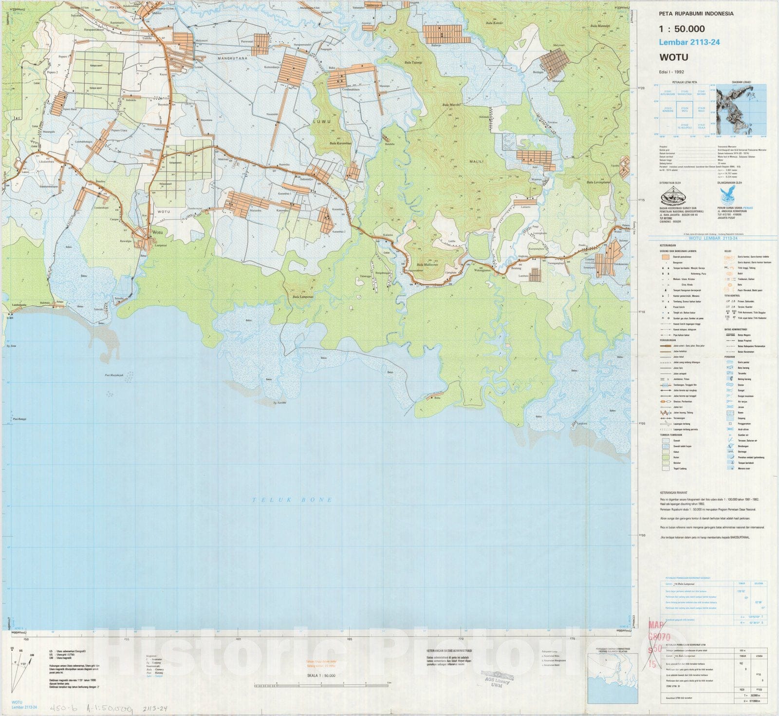 • Map : Wotu, Indonesia 1991, Peta rupabumi Indonesia, 1:50,000 , Antique Vintage Reproduction